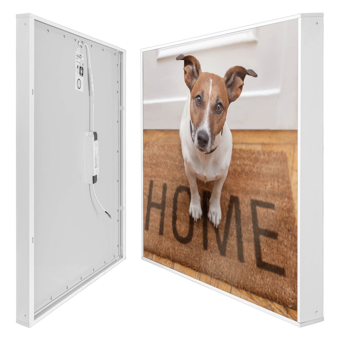 banjado LED Wandleuchte Sie erhalten hier eine stimmungsvolle Lichtquelle bestehend aus dem Set: Smart LED Panel mit Trafo, Motivscheibe (Motiv: Wachhund Jack Russel) und Rahmen. Der Aufbau ist denkbar einfach, Sie erhalten eine detaillierte Aufbauanleitung. Die komplette Leuchte kann sowohl an der Wand angeschlossen werden als auch als Deckenleuchte. Die Gesamtgröße der Lampe ist 62,5 x 62,5 x 4,5cm (HxBxT). Das Set besteht aus: LED Panel mit Trafo, Rahmen und Motivbild zum Selbstaufbau.