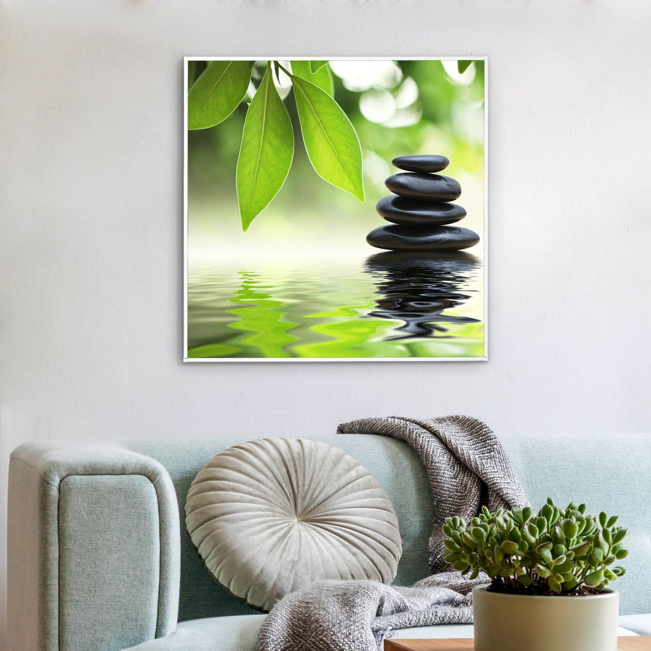 banjado LED Wandleuchte Sie erhalten hier eine stimmungsvolle Lichtquelle bestehend aus dem Set: Smart LED Panel mit Trafo, Motivscheibe (Motiv: Steine&Relax) und Rahmen. Der Aufbau ist denkbar einfach, Sie erhalten eine detaillierte Aufbauanleitung. Die komplette Leuchte kann sowohl an der Wand angeschlossen werden als auch als Deckenleuchte. Die Gesamtgröße der Lampe ist 62,5 x 62,5 x 4,5cm (HxBxT). Das Set besteht aus: LED Panel mit Trafo, Rahmen und Motivbild zum Selbstaufbau.