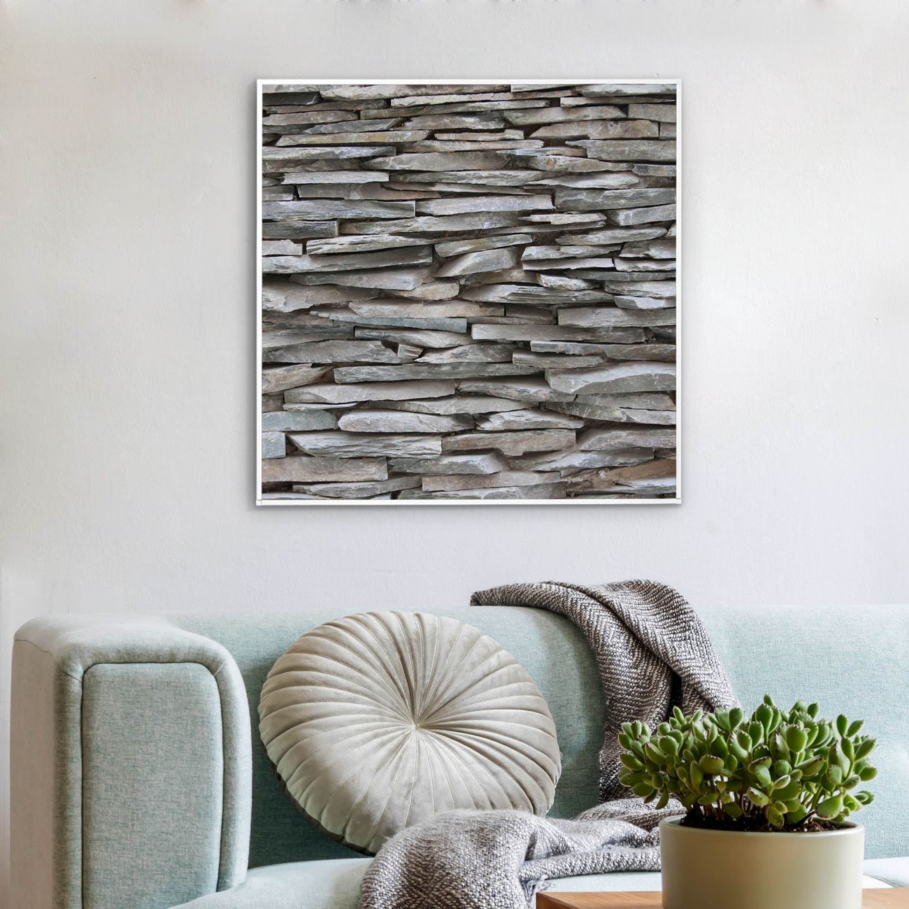 banjado LED Wandleuchte Sie erhalten hier eine stimmungsvolle Lichtquelle bestehend aus dem Set: Smart LED Panel mit Trafo, Motivscheibe (Motiv: Steinwand) und Rahmen. Der Aufbau ist denkbar einfach, Sie erhalten eine detaillierte Aufbauanleitung. Die komplette Leuchte kann sowohl an der Wand angeschlossen werden als auch als Deckenleuchte. Die Gesamtgröße der Lampe ist 62,5 x 62,5 x 4,5cm (HxBxT). Das Set besteht aus: LED Panel mit Trafo, Rahmen und Motivbild zum Selbstaufbau.