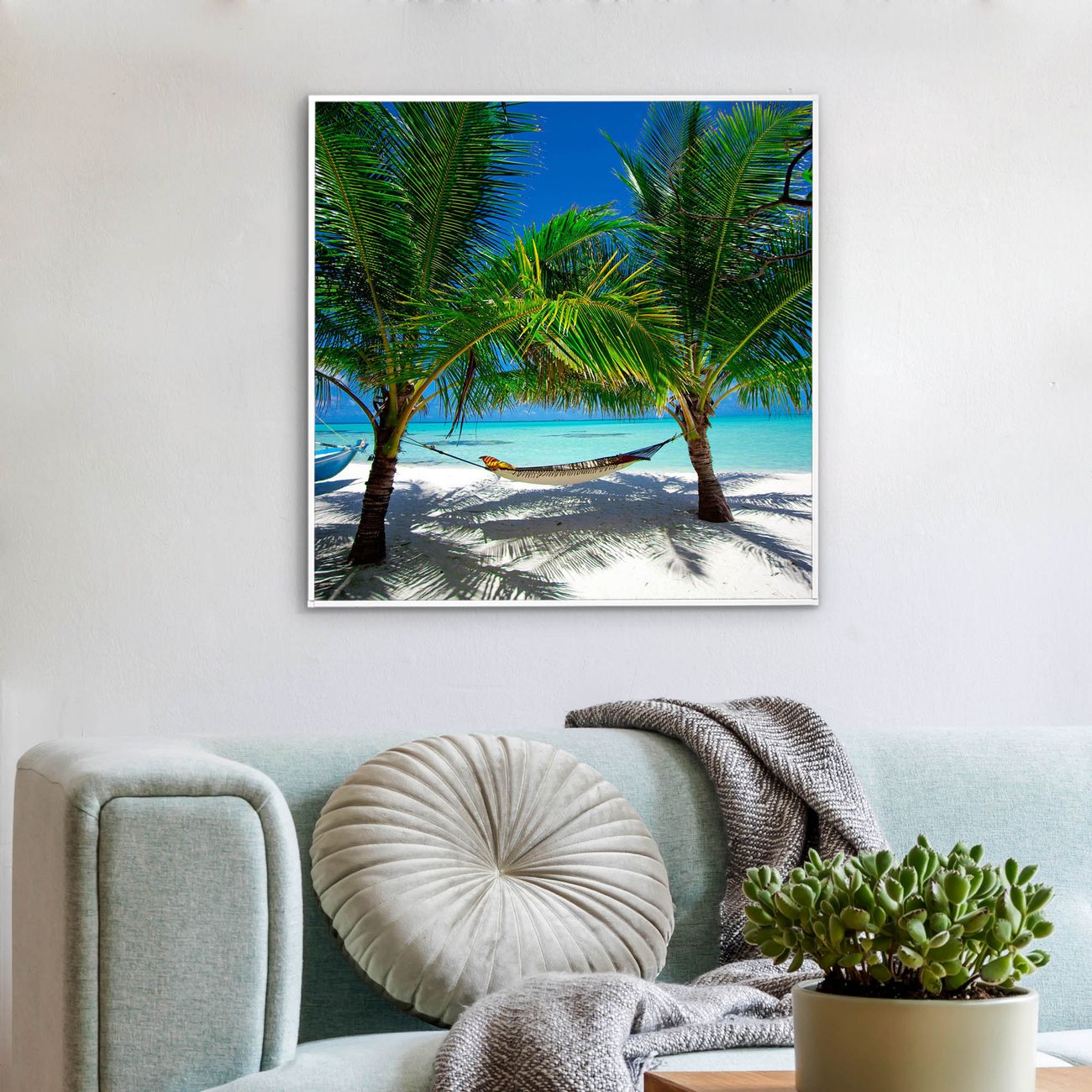 Mit der banjado smarten LED Wandleuchte mit Motiv Strand schaffen Sie in Ihren Räumen eine besondere Atmosphäre. Abends spendet die Wandlampe Licht und tagsüber haben Sie ein stimmungsvolles Wandbild. Die Leuchte besteht aus einem zeitlosen weißen Rahmen, in den das smarte WLAN LED Paneel sowie das Bild eingefasst wird. Die Montage ist denkbar einfach, Sie erhalten eine detaillierte Aufbauanleitung sowie Montagematerial. Eine angenehme Lichtquelle erhöht nachweislich das Wohlbefinden. Das Motiv der Leuchte lässt sich leicht wechseln, so können Sie Ihre Wohnräume individuell gestalten. Die Montage ist an der Wand oder an der Decke möglich.