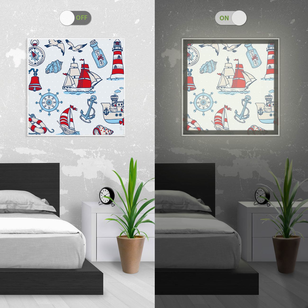 - Aussehen: Tags ein Wandbild, Nachts eine Lampe