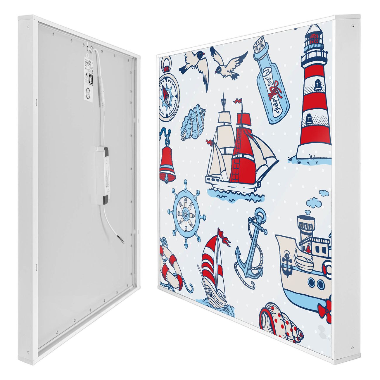 banjado LED Wandleuchte Sie erhalten hier eine stimmungsvolle Lichtquelle bestehend aus dem Set: Smart LED Panel mit Trafo, Motivscheibe (Motiv: Schiff Ahoj) und Rahmen. Der Aufbau ist denkbar einfach, Sie erhalten eine detaillierte Aufbauanleitung. Die komplette Leuchte kann sowohl an der Wand angeschlossen werden als auch als Deckenleuchte. Die Gesamtgröße der Lampe ist 62,5 x 62,5 x 4,5cm (HxBxT). Das Set besteht aus: LED Panel mit Trafo, Rahmen und Motivbild zum Selbstaufbau.