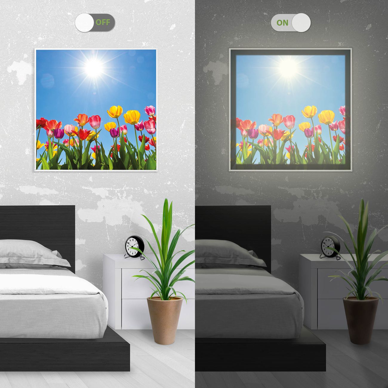 - Aussehen: Tags ein Wandbild, Nachts eine Lampe