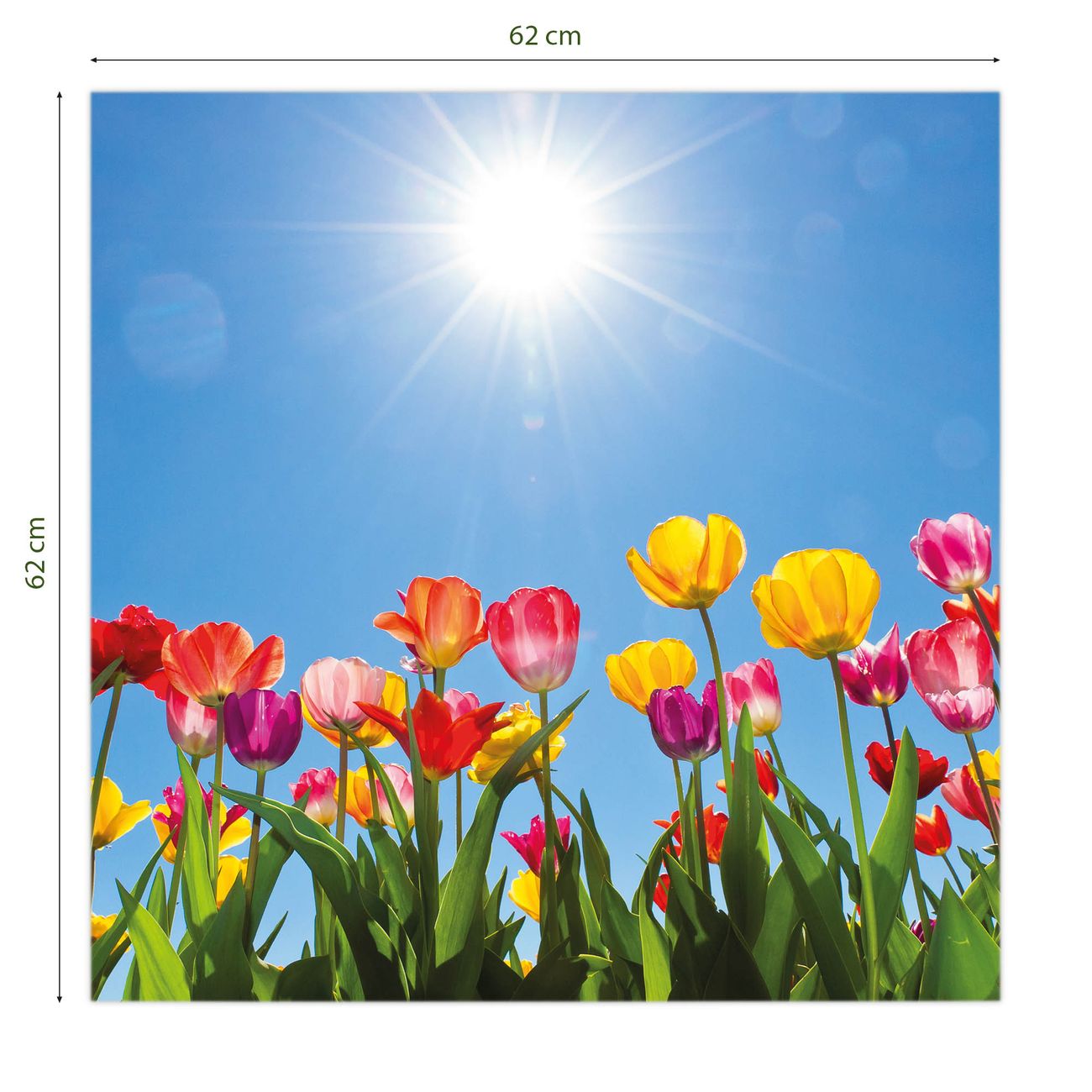 banjado LED Wandleuchte Sie erhalten hier eine stimmungsvolle Lichtquelle bestehend aus dem Set: Smart LED Panel mit Trafo, Motivscheibe (Motiv: Tulpenmeer) und Rahmen. Der Aufbau ist denkbar einfach, Sie erhalten eine detaillierte Aufbauanleitung. Die komplette Leuchte kann sowohl an der Wand angeschlossen werden als auch als Deckenleuchte. Die Gesamtgröße der Lampe ist 62,5 x 62,5 x 4,5cm (HxBxT). Das Set besteht aus: LED Panel mit Trafo, Rahmen und Motivbild zum Selbstaufbau.