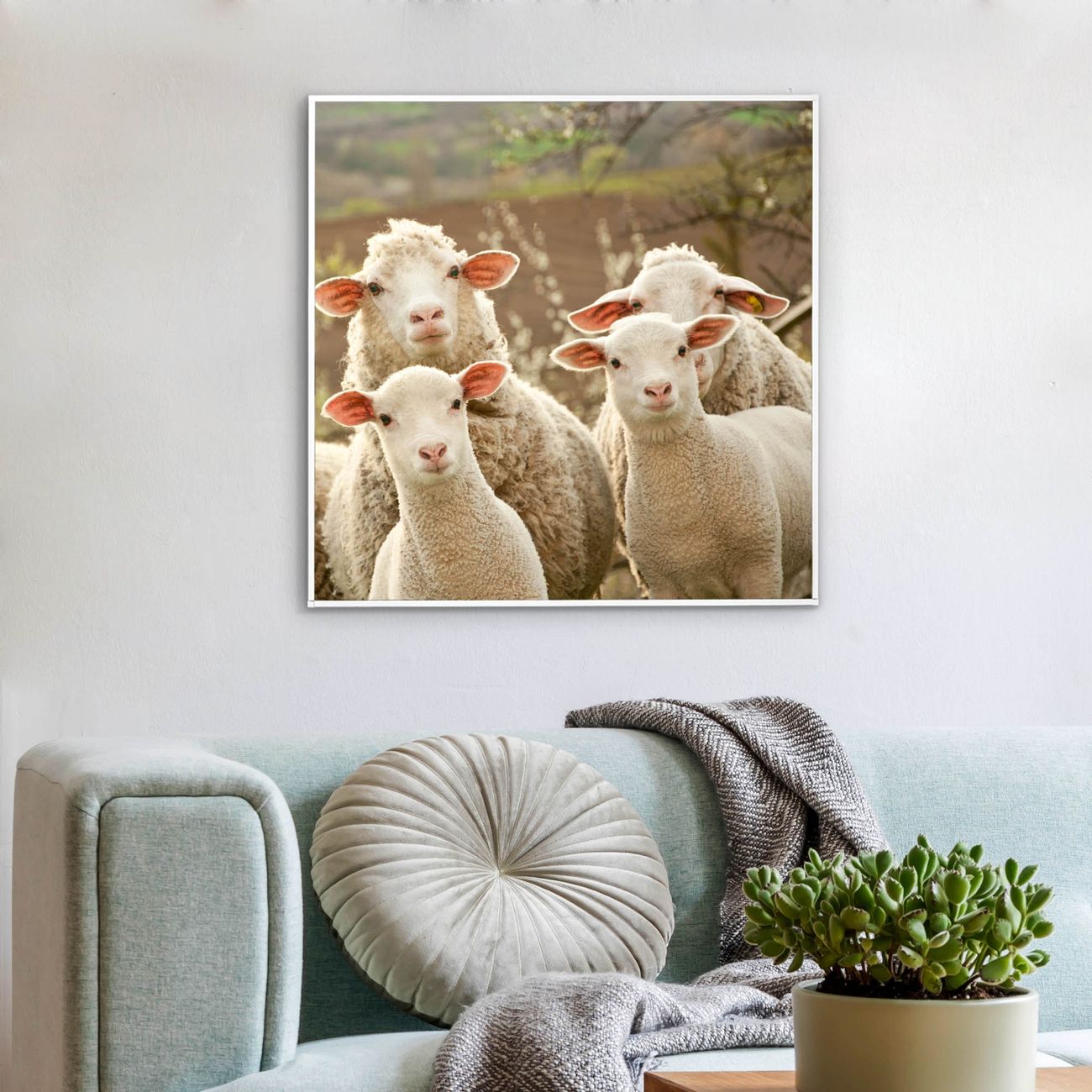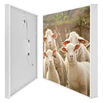 banjado LED Wandleuchte Sie erhalten hier eine stimmungsvolle Lichtquelle bestehend aus dem Set: Smart LED Panel mit Trafo, Motivscheibe (Motiv: Schaffamilie) und Rahmen. Der Aufbau ist denkbar einfach, Sie erhalten eine detaillierte Aufbauanleitung. Die komplette Leuchte kann sowohl an der Wand angeschlossen werden als auch als Deckenleuchte. Die Gesamtgröße der Lampe ist 62,5 x 62,5 x 4,5cm (HxBxT). Das Set besteht aus: LED Panel mit Trafo, Rahmen und Motivbild zum Selbstaufbau.