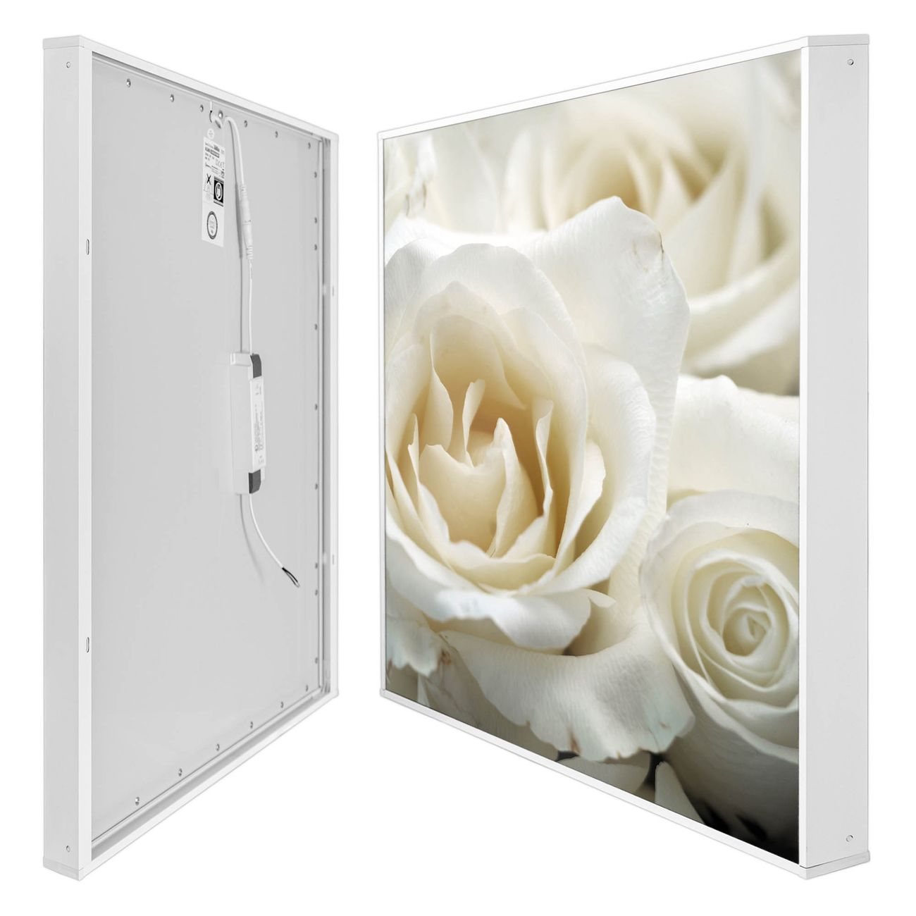 banjado LED Wandleuchte Sie erhalten hier eine stimmungsvolle Lichtquelle bestehend aus dem Set: Smart LED Panel mit Trafo, Motivscheibe (Motiv: White Roses) und Rahmen. Der Aufbau ist denkbar einfach, Sie erhalten eine detaillierte Aufbauanleitung. Die komplette Leuchte kann sowohl an der Wand angeschlossen werden als auch als Deckenleuchte. Die Gesamtgröße der Lampe ist 62,5 x 62,5 x 4,5cm (HxBxT). Das Set besteht aus: LED Panel mit Trafo, Rahmen und Motivbild zum Selbstaufbau.