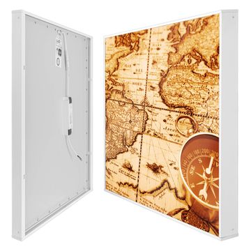 banjado LED Wandleuchte Sie erhalten hier eine stimmungsvolle Lichtquelle bestehend aus dem Set: Smart LED Panel mit Trafo, Motivscheibe (Motiv: World Map) und Rahmen. Der Aufbau ist denkbar einfach, Sie erhalten eine detaillierte Aufbauanleitung. Die komplette Leuchte kann sowohl an der Wand angeschlossen werden als auch als Deckenleuchte. Die Gesamtgröße der Lampe ist 62,5 x 62,5 x 4,5cm (HxBxT). Das Set besteht aus: LED Panel mit Trafo, Rahmen und Motivbild zum Selbstaufbau.