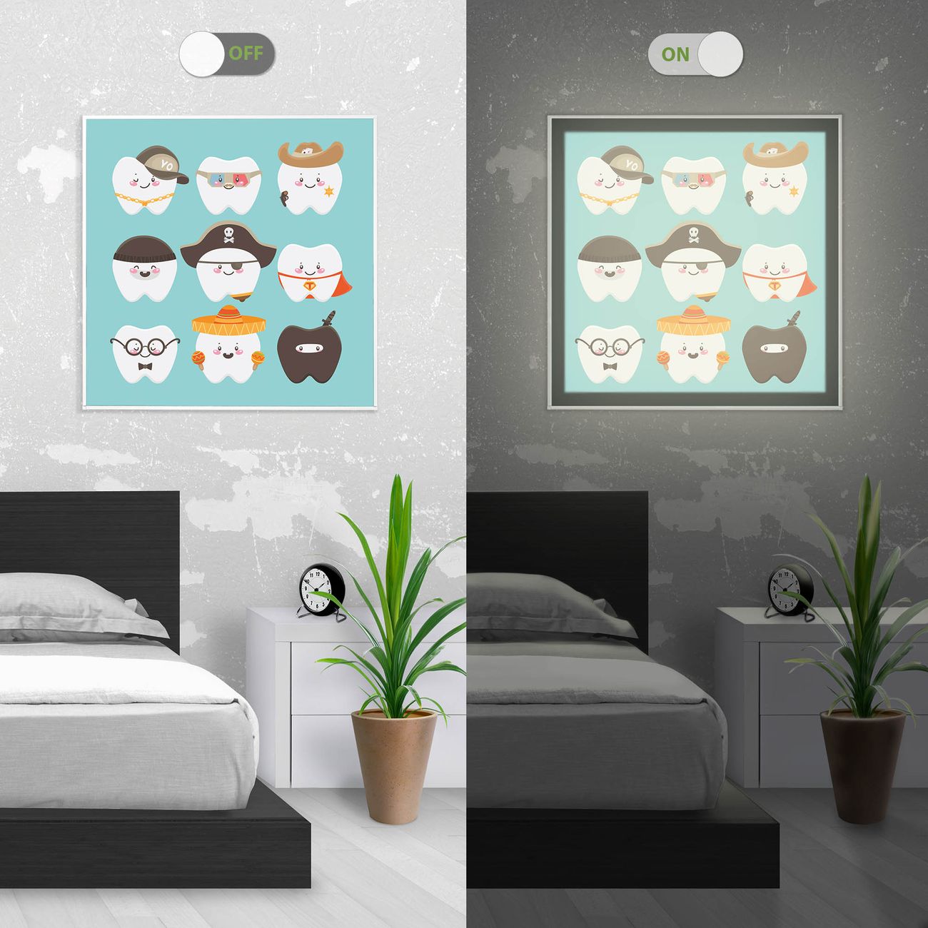 - Aussehen: Tags ein Wandbild, Nachts eine Lampe