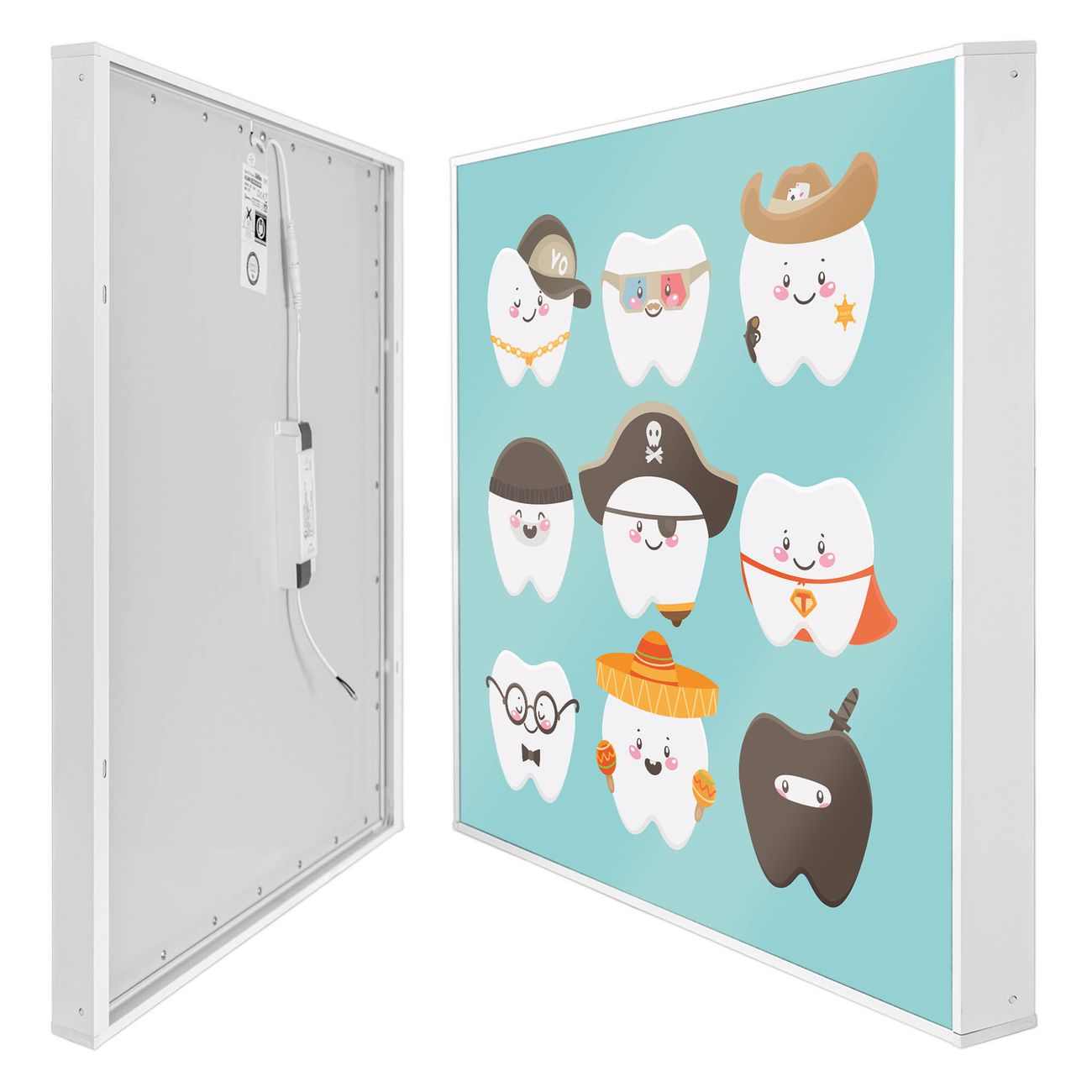 Mit der banjado smarten LED Wandleuchte mit Motiv Neun Zähne schaffen Sie in Ihren Räumen eine besondere Atmosphäre. Abends spendet die Wandlampe Licht und tagsüber haben Sie ein stimmungsvolles Wandbild. Die Leuchte besteht aus einem zeitlosen weißen Rahmen, in den das smarte WLAN LED Paneel sowie das Bild eingefasst wird. Die Montage ist denkbar einfach, Sie erhalten eine detaillierte Aufbauanleitung sowie Montagematerial. Eine angenehme Lichtquelle erhöht nachweislich das Wohlbefinden. Das Motiv der Leuchte lässt sich leicht wechseln, so können Sie Ihre Wohnräume individuell gestalten. Die Montage ist an der Wand oder an der Decke möglich.