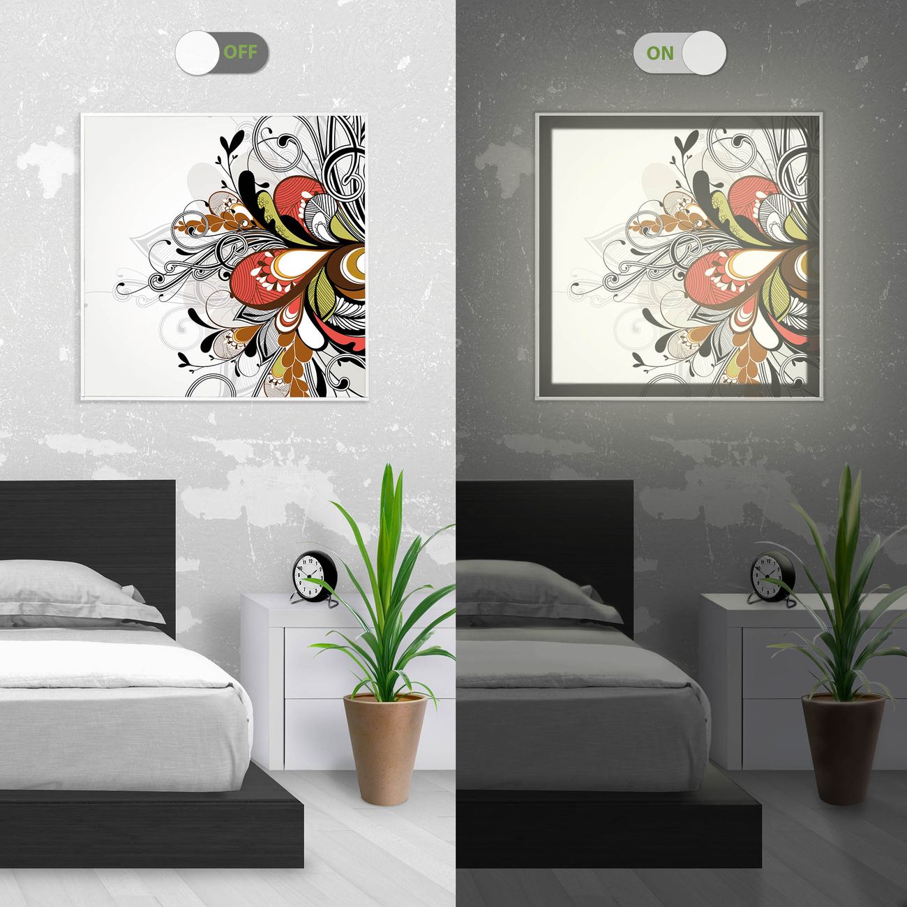 - Aussehen: Tags ein Wandbild, Nachts eine Lampe