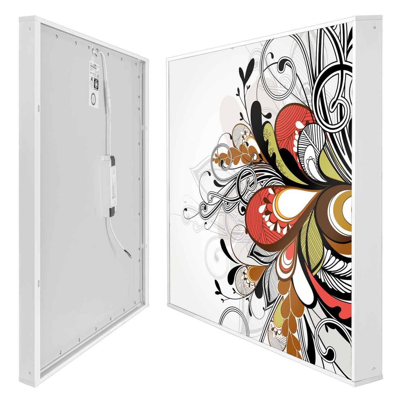 banjado LED Wandleuchte Sie erhalten hier eine stimmungsvolle Lichtquelle bestehend aus dem Set: Smart LED Panel mit Trafo, Motivscheibe (Motiv: Ornament 2) und Rahmen. Der Aufbau ist denkbar einfach, Sie erhalten eine detaillierte Aufbauanleitung. Die komplette Leuchte kann sowohl an der Wand angeschlossen werden als auch als Deckenleuchte. Die Gesamtgröße der Lampe ist 62,5 x 62,5 x 4,5cm (HxBxT). Das Set besteht aus: LED Panel mit Trafo, Rahmen und Motivbild zum Selbstaufbau.