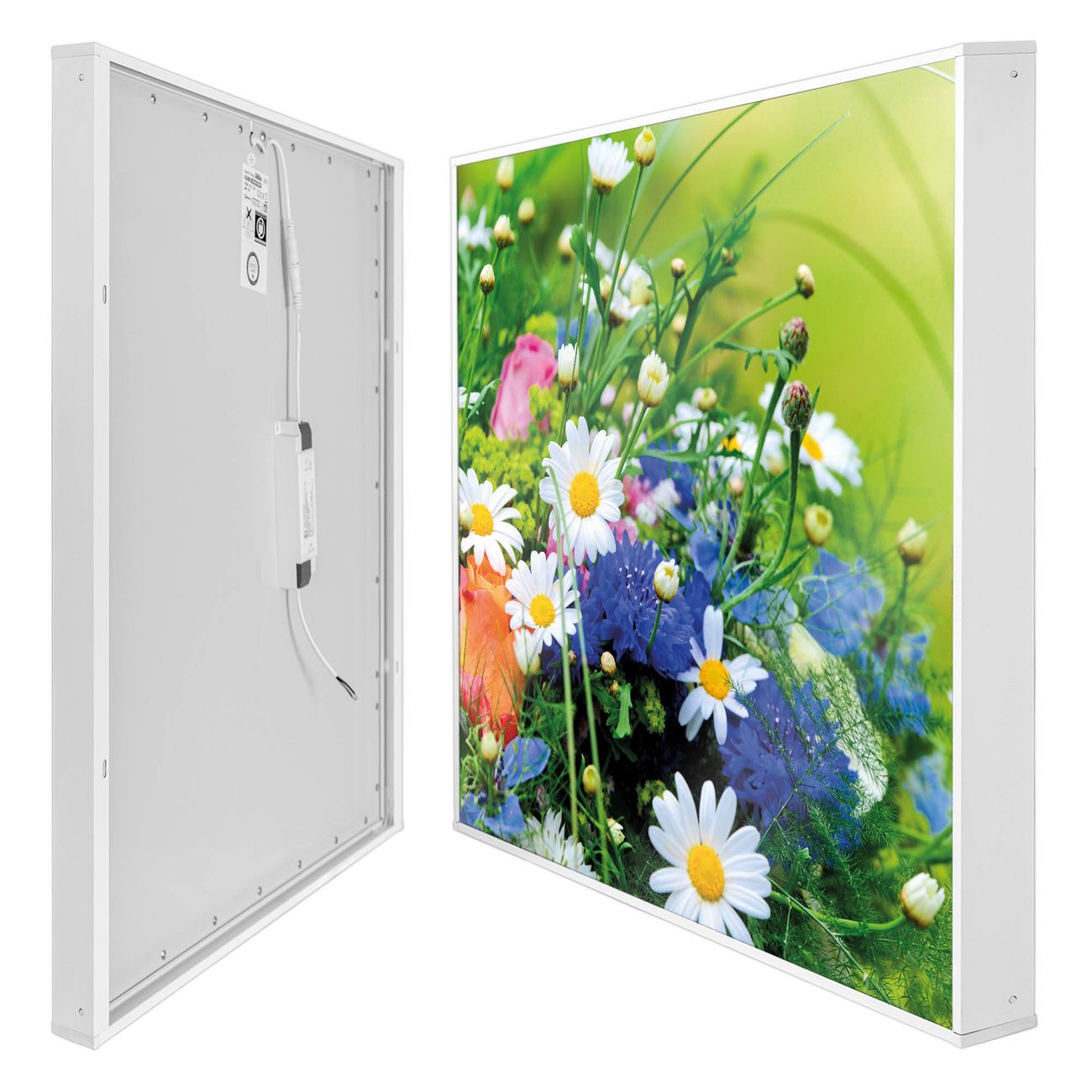 banjado LED Wandleuchte Sie erhalten hier eine stimmungsvolle Lichtquelle bestehend aus dem Set: Smart LED Panel mit Trafo, Motivscheibe (Motiv: Blumenstrauß) und Rahmen. Der Aufbau ist denkbar einfach, Sie erhalten eine detaillierte Aufbauanleitung. Die komplette Leuchte kann sowohl an der Wand angeschlossen werden als auch als Deckenleuchte. Die Gesamtgröße der Lampe ist 62,5 x 62,5 x 4,5cm (HxBxT). Das Set besteht aus: LED Panel mit Trafo, Rahmen und Motivbild zum Selbstaufbau.