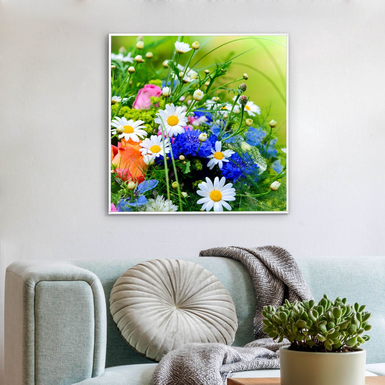 Mit der banjado smarten LED Wandleuchte mit Motiv Blumenstrauß schaffen Sie in Ihren Räumen eine besondere Atmosphäre. Abends spendet die Wandlampe Licht und tagsüber haben Sie ein stimmungsvolles Wandbild. Die Leuchte besteht aus einem zeitlosen weißen Rahmen, in den das smarte WLAN LED Paneel sowie das Bild eingefasst wird. Die Montage ist denkbar einfach, Sie erhalten eine detaillierte Aufbauanleitung sowie Montagematerial. Eine angenehme Lichtquelle erhöht nachweislich das Wohlbefinden. Das Motiv der Leuchte lässt sich leicht wechseln, so können Sie Ihre Wohnräume individuell gestalten. Die Montage ist an der Wand oder an der Decke möglich.