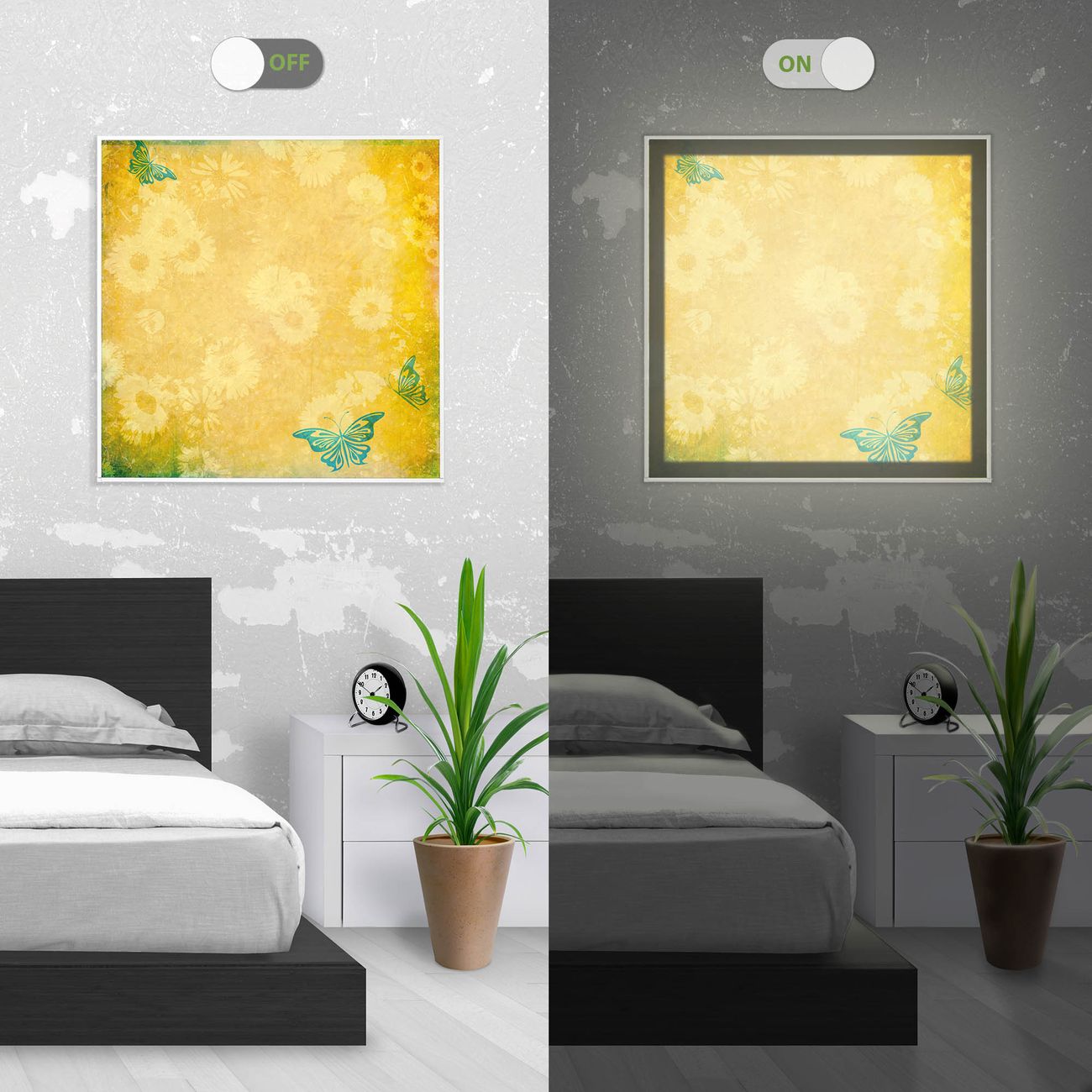 Im eingeschalteten Zustand wirft das Bild einen Schatten wie in der ersten Ansicht zu sehen.