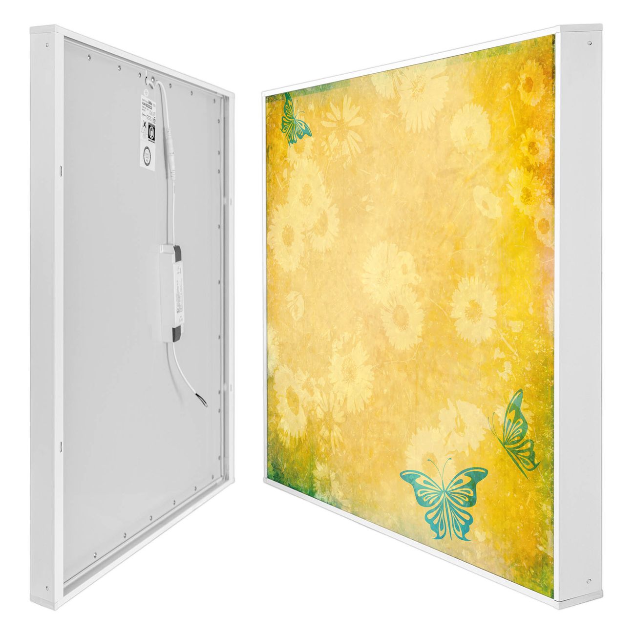 banjado LED Wandleuchte Sie erhalten hier eine stimmungsvolle Lichtquelle bestehend aus dem Set: Smart LED Panel mit Trafo, Motivscheibe (Motiv: Muster Sommer) und Rahmen. Der Aufbau ist denkbar einfach, Sie erhalten eine detaillierte Aufbauanleitung. Die komplette Leuchte kann sowohl an der Wand angeschlossen werden als auch als Deckenleuchte. Die Gesamtgröße der Lampe ist 62,5 x 62,5 x 4,5cm (HxBxT). Das Set besteht aus: LED Panel mit Trafo, Rahmen und Motivbild zum Selbstaufbau.
