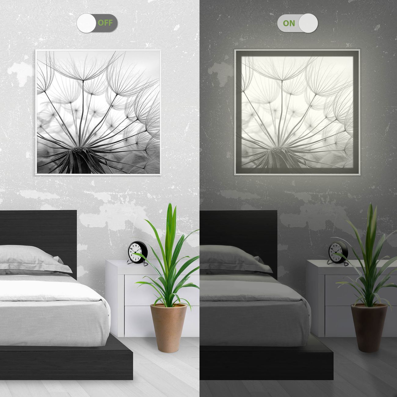 Im eingeschalteten Zustand wirft das Bild einen Schatten wie in der ersten Ansicht zu sehen.
