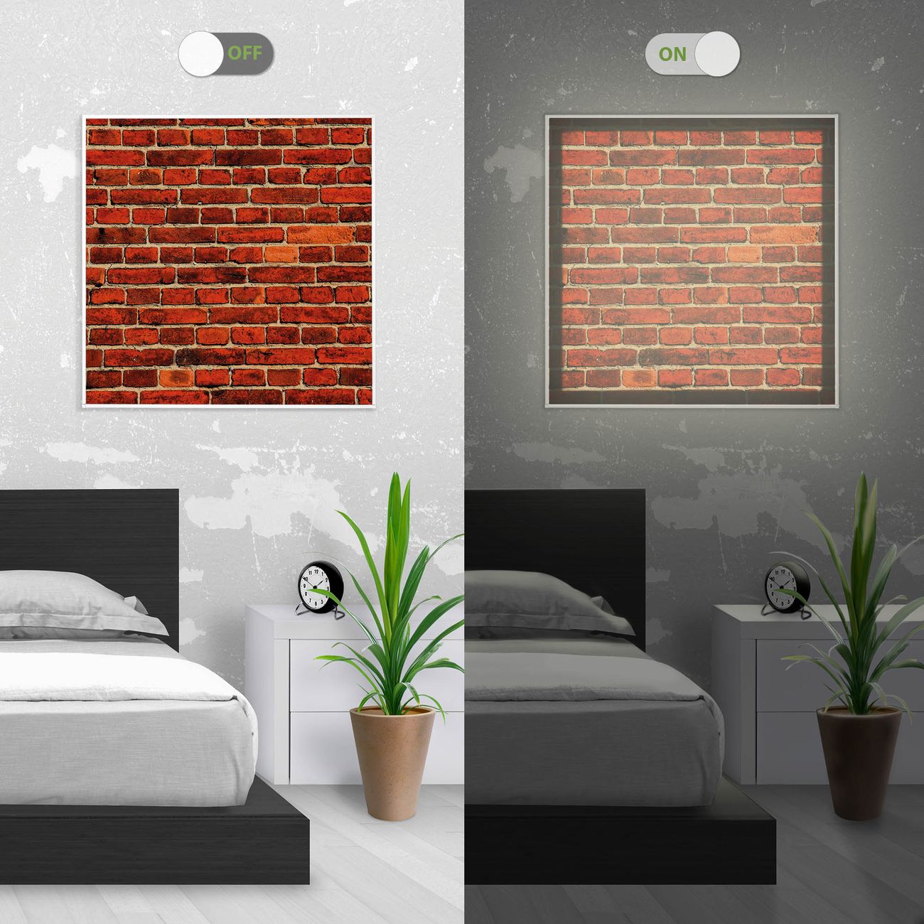 Im eingeschalteten Zustand wirft das Bild einen Schatten wie in der ersten Ansicht zu sehen.