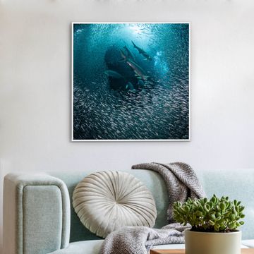 Mit der banjado smarten LED Wandleuchte mit Motiv Fische im Meer schaffen Sie in Ihren Räumen eine besondere Atmosphäre. Abends spendet die Wandlampe Licht und tagsüber haben Sie ein stimmungsvolles Wandbild. Die Leuchte besteht aus einem zeitlosen weißen Rahmen, in den das smarte WLAN LED Paneel sowie das Bild eingefasst wird. Die Montage ist denkbar einfach, Sie erhalten eine detaillierte Aufbauanleitung sowie Montagematerial. Eine angenehme Lichtquelle erhöht nachweislich das Wohlbefinden. Das Motiv der Leuchte lässt sich leicht wechseln, so können Sie Ihre Wohnräume individuell gestalten. Die Montage ist an der Wand oder an der Decke möglich.