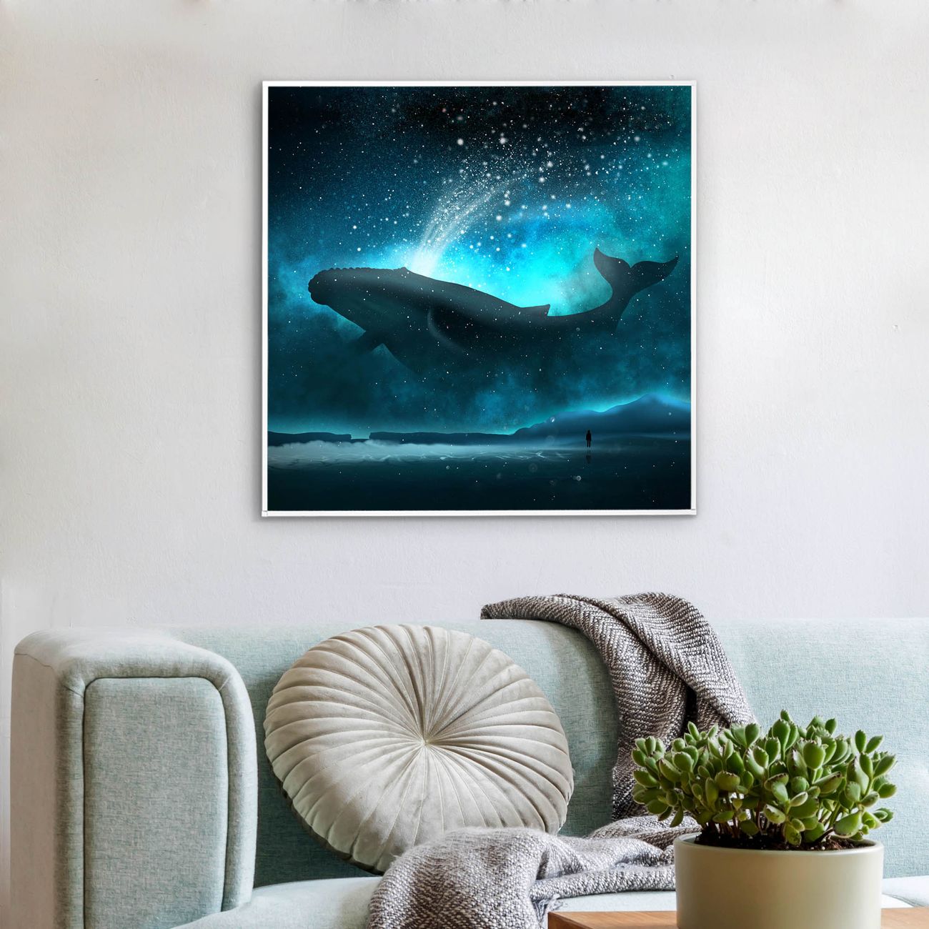 Mit der banjado smarten LED Wandleuchte mit Motiv fliegender Wal schaffen Sie in Ihren Räumen eine besondere Atmosphäre. Abends spendet die Wandlampe Licht und tagsüber haben Sie ein stimmungsvolles Wandbild. Die Leuchte besteht aus einem zeitlosen weißen Rahmen, in den das smarte WLAN LED Paneel sowie das Bild eingefasst wird. Die Montage ist denkbar einfach, Sie erhalten eine detaillierte Aufbauanleitung sowie Montagematerial. Eine angenehme Lichtquelle erhöht nachweislich das Wohlbefinden. Das Motiv der Leuchte lässt sich leicht wechseln, so können Sie Ihre Wohnräume individuell gestalten. Die Montage ist an der Wand oder an der Decke möglich.