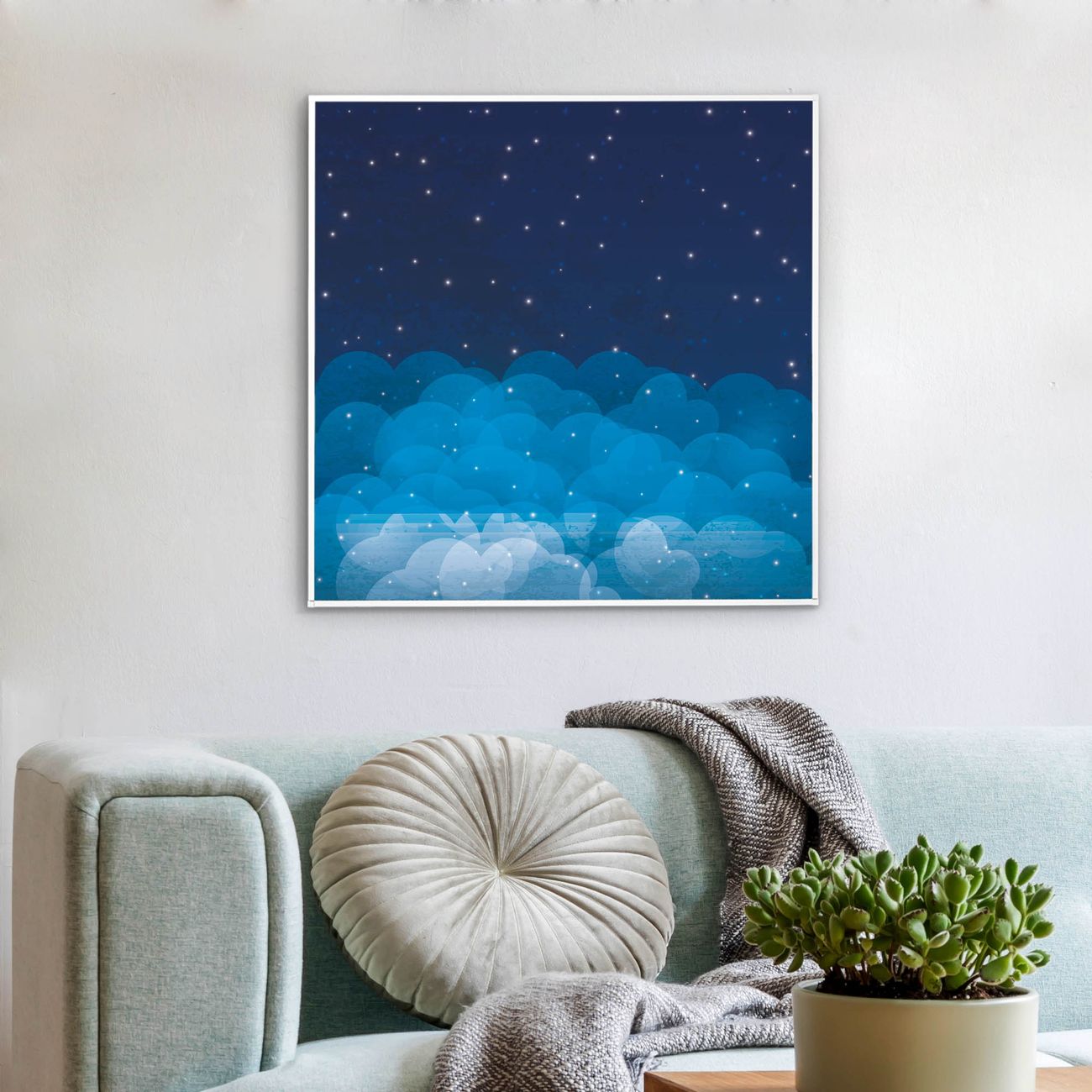 Mit der banjado smarten LED Wandleuchte mit Motiv Sternenhimmel 2 schaffen Sie in Ihren Räumen eine besondere Atmosphäre. Abends spendet die Wandlampe Licht und tagsüber haben Sie ein stimmungsvolles Wandbild. Die Leuchte besteht aus einem zeitlosen weißen Rahmen, in den das smarte WLAN LED Paneel sowie das Bild eingefasst wird. Die Montage ist denkbar einfach, Sie erhalten eine detaillierte Aufbauanleitung sowie Montagematerial. Eine angenehme Lichtquelle erhöht nachweislich das Wohlbefinden. Das Motiv der Leuchte lässt sich leicht wechseln, so können Sie Ihre Wohnräume individuell gestalten. Die Montage ist an der Wand oder an der Decke möglich.