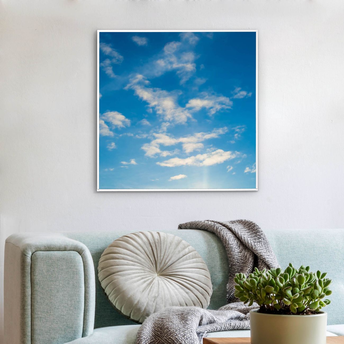 Mit der banjado smarten LED Wandleuchte mit Motiv Wolken 11 schaffen Sie in Ihren Räumen eine besondere Atmosphäre. Abends spendet die Wandlampe Licht und tagsüber haben Sie ein stimmungsvolles Wandbild. Die Leuchte besteht aus einem zeitlosen weißen Rahmen, in den das smarte WLAN LED Paneel sowie das Bild eingefasst wird. Die Montage ist denkbar einfach, Sie erhalten eine detaillierte Aufbauanleitung sowie Montagematerial. Eine angenehme Lichtquelle erhöht nachweislich das Wohlbefinden. Das Motiv der Leuchte lässt sich leicht wechseln, so können Sie Ihre Wohnräume individuell gestalten. Die Montage ist an der Wand oder an der Decke möglich.