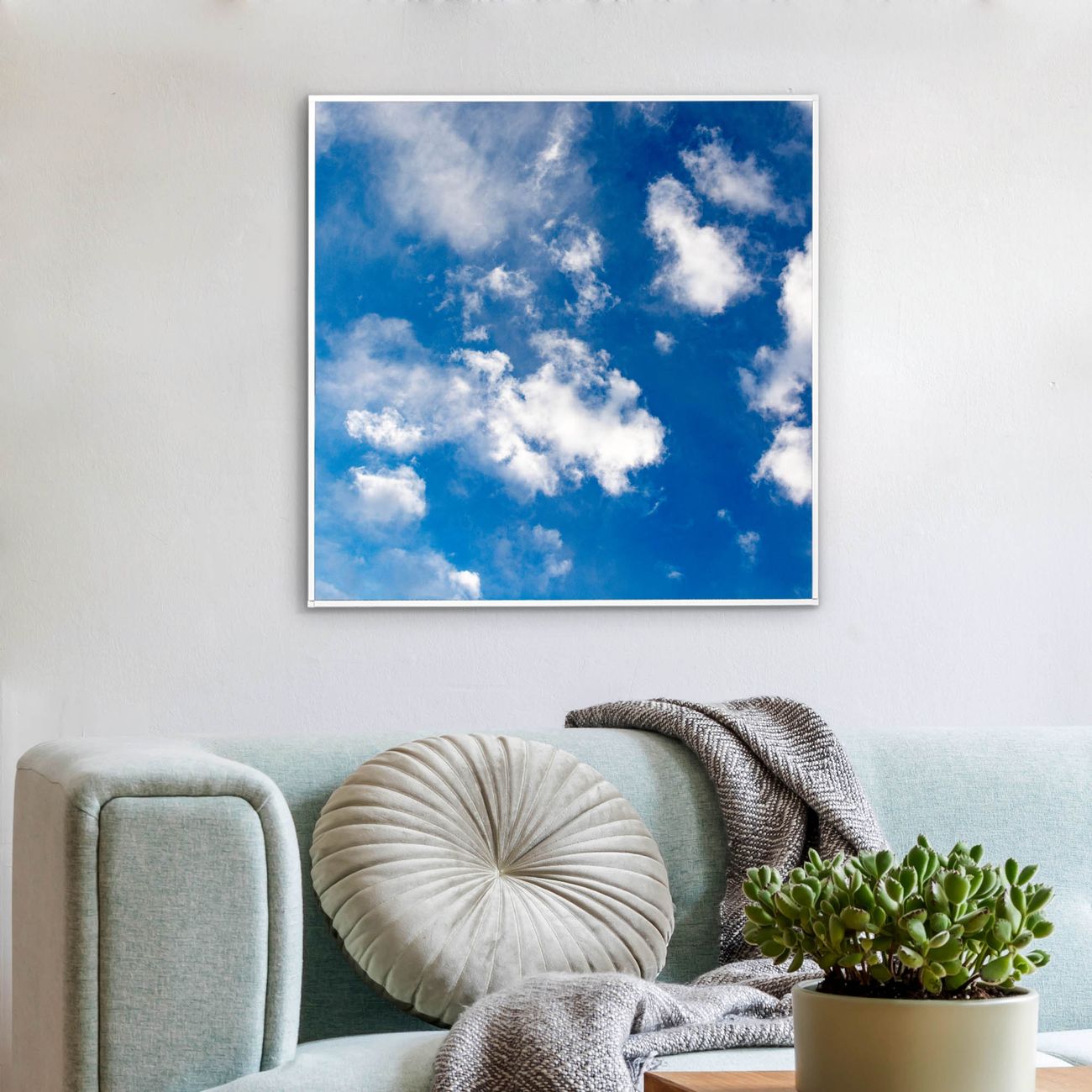Mit der banjado smarten LED Wandleuchte mit Motiv Wolken 2 schaffen Sie in Ihren Räumen eine besondere Atmosphäre. Abends spendet die Wandlampe Licht und tagsüber haben Sie ein stimmungsvolles Wandbild. Die Leuchte besteht aus einem zeitlosen weißen Rahmen, in den das smarte WLAN LED Paneel sowie das Bild eingefasst wird. Die Montage ist denkbar einfach, Sie erhalten eine detaillierte Aufbauanleitung sowie Montagematerial. Eine angenehme Lichtquelle erhöht nachweislich das Wohlbefinden. Das Motiv der Leuchte lässt sich leicht wechseln, so können Sie Ihre Wohnräume individuell gestalten. Die Montage ist an der Wand oder an der Decke möglich.