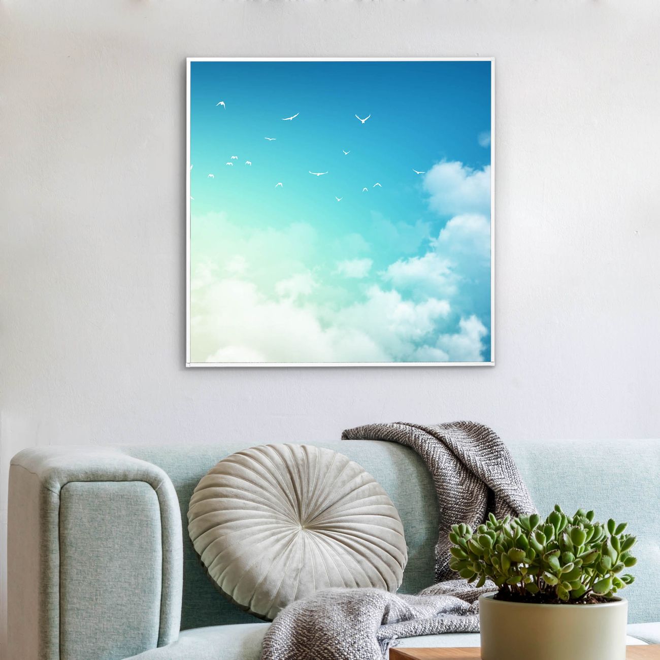 Mit der banjado smarten LED Wandleuchte mit Motiv Wolken 8 schaffen Sie in Ihren Räumen eine besondere Atmosphäre. Abends spendet die Wandlampe Licht und tagsüber haben Sie ein stimmungsvolles Wandbild. Die Leuchte besteht aus einem zeitlosen weißen Rahmen, in den das smarte WLAN LED Paneel sowie das Bild eingefasst wird. Die Montage ist denkbar einfach, Sie erhalten eine detaillierte Aufbauanleitung sowie Montagematerial. Eine angenehme Lichtquelle erhöht nachweislich das Wohlbefinden. Das Motiv der Leuchte lässt sich leicht wechseln, so können Sie Ihre Wohnräume individuell gestalten. Die Montage ist an der Wand oder an der Decke möglich.