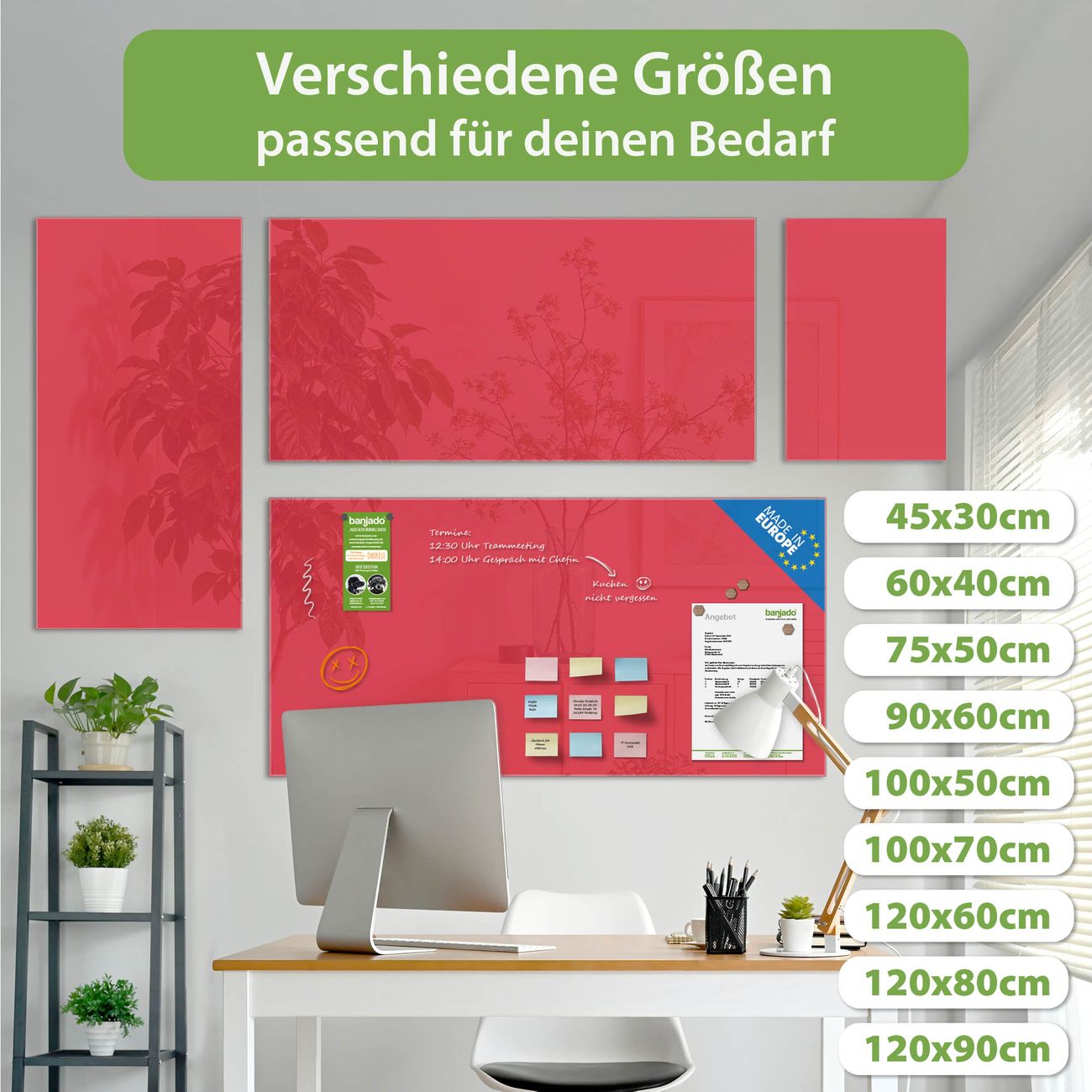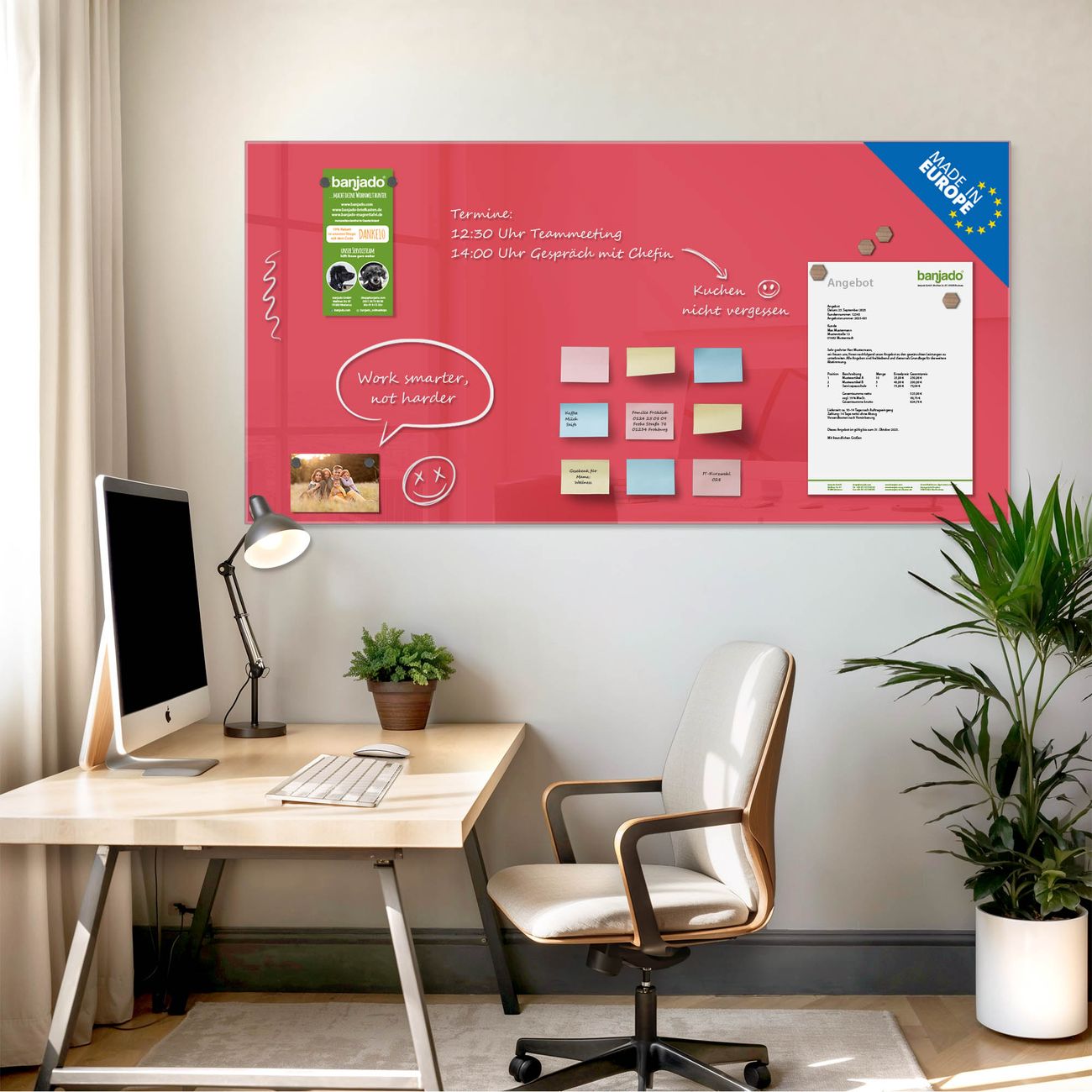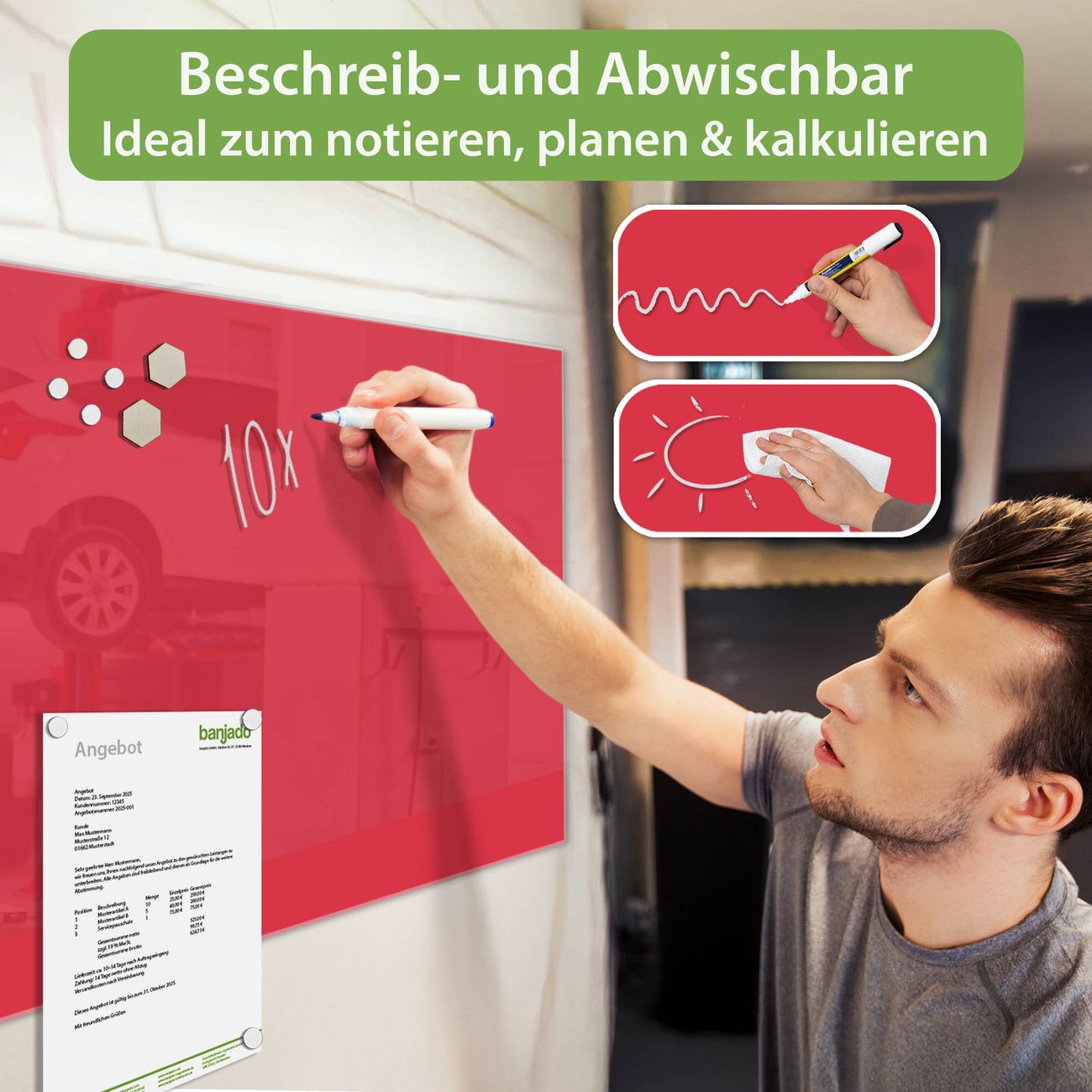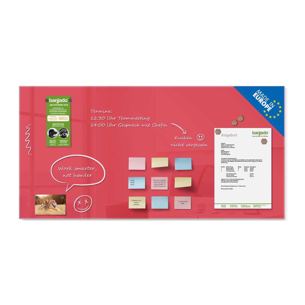 Glas Magnettafel im Querformat Farbe Feuerrot