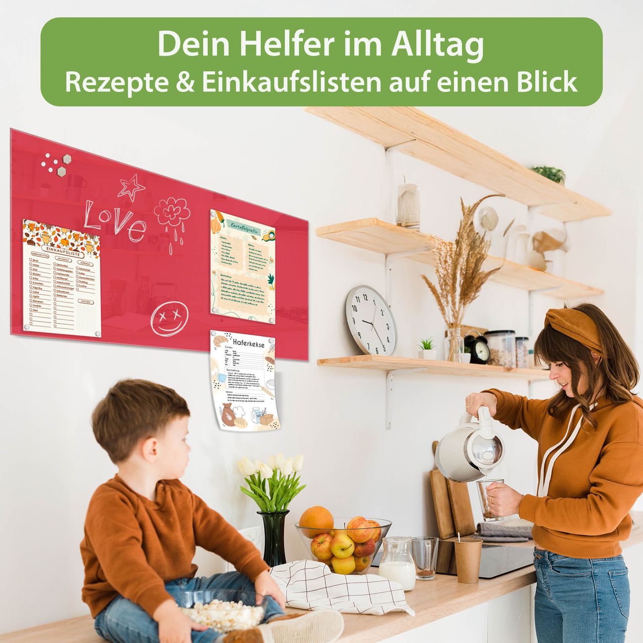 Ein Stück Design, das Ihren Alltag organisiert. Schreiben, heften, inspirieren - alles an einem Ort. Qualität, die man spürt. Montage leicht gemacht. Handwerk mit Herz - veredelt in Sachsen. Einzigartiges Design mit Motiv Farbe Feuerrot Beschreibbare Glasoberfläche, leicht zu reinigen Starke Magnetkraft durch Stahlrückwand Inklusive 4 Neodym-Magneten Flexible Montageoptionen Handveredelt in Sachsen - Qualität, die bleibt