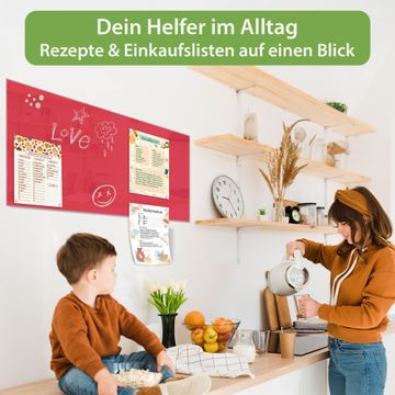 Auf der glatten Glasoberfläche lassen sich Termine, Rezepte oder Notizen ganz einfach mit Kreidestiften festhalten und rückstandslos entfernen. Starke Neodym-Magnete halten Ihre wichtigsten Erinnerungen sicher an Ort und Stelle. So entsteht Ihre ganz persönliche Ideenwand - jeden Tag neu.