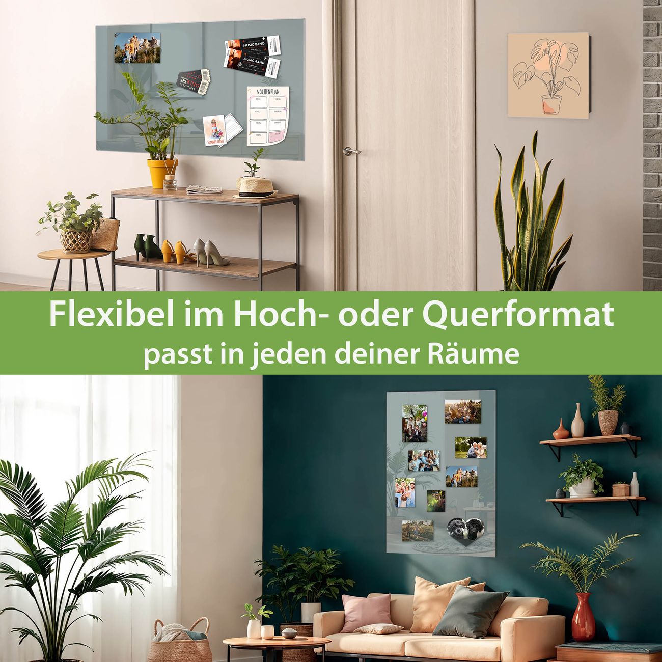 Dank der flachen Bauweise wirkt die Magnetwand fast schwebend an der Wand. Sie können sie mit Montagekleber elegant befestigen oder mit einem passenden Set klassisch verschrauben - beides sorgt für sicheren Halt und eine dezente Optik.