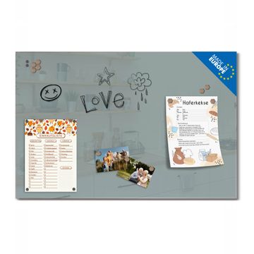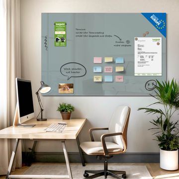 Auf der glatten Glasoberfläche lassen sich Termine, Rezepte oder Notizen ganz einfach mit Kreidestiften festhalten und rückstandslos entfernen. Starke Neodym-Magnete halten Ihre wichtigsten Erinnerungen sicher an Ort und Stelle. So entsteht Ihre ganz persönliche Ideenwand - jeden Tag neu.