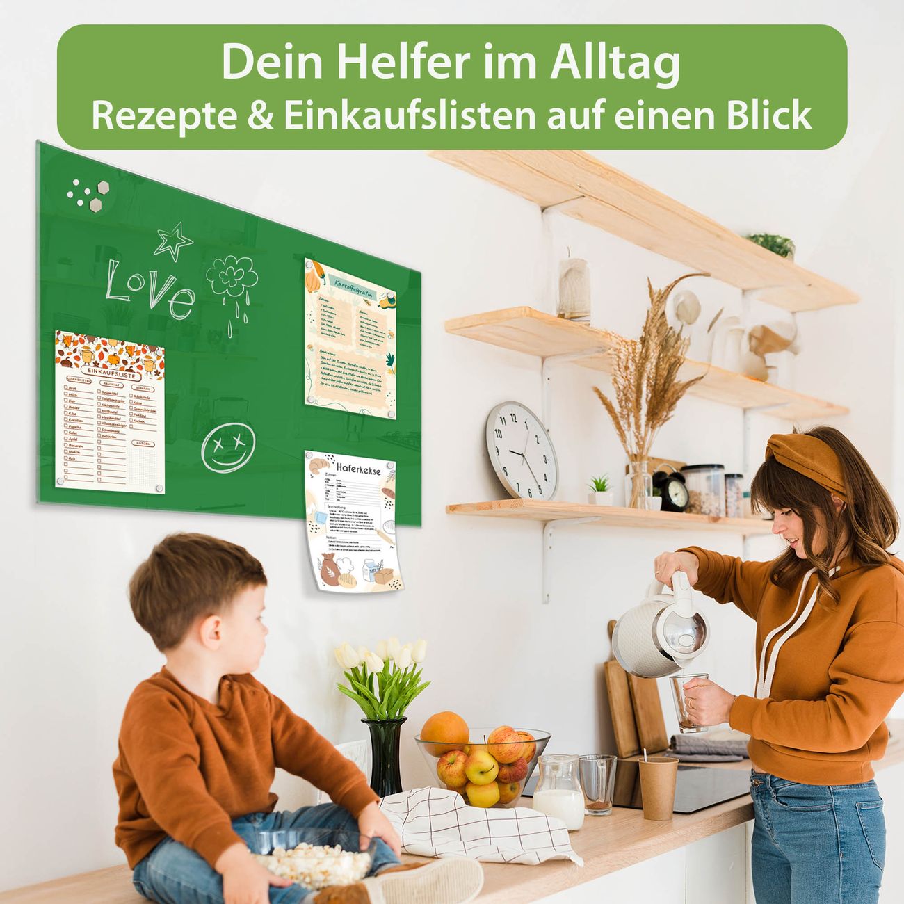 Ein Stück Design, das Ihren Alltag organisiert. Schreiben, heften, inspirieren - alles an einem Ort. Qualität, die man spürt. Montage leicht gemacht. Handwerk mit Herz - veredelt in Sachsen. Einzigartiges Design mit Motiv Farbe Grün Beschreibbare Glasoberfläche, leicht zu reinigen Starke Magnetkraft durch Stahlrückwand Inklusive 4 Neodym-Magneten Flexible Montageoptionen Handveredelt in Sachsen - Qualität, die bleibt