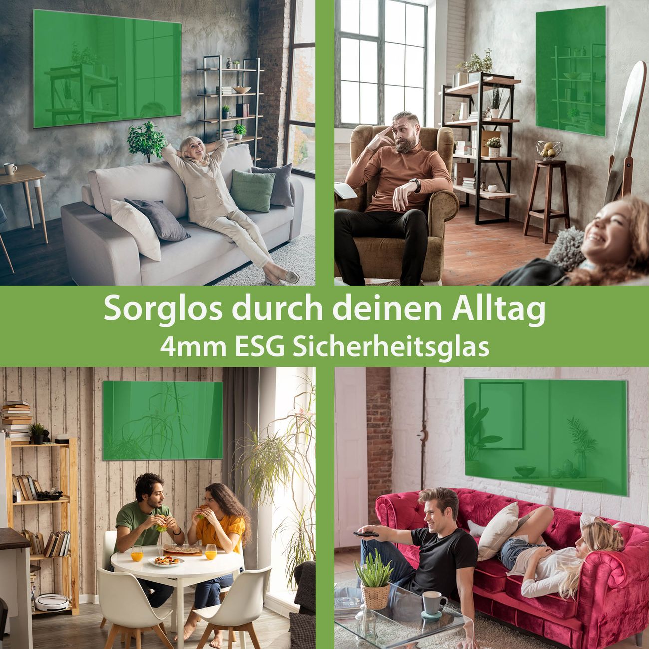 Glas Magnettafel im Querformat Farbe Grün