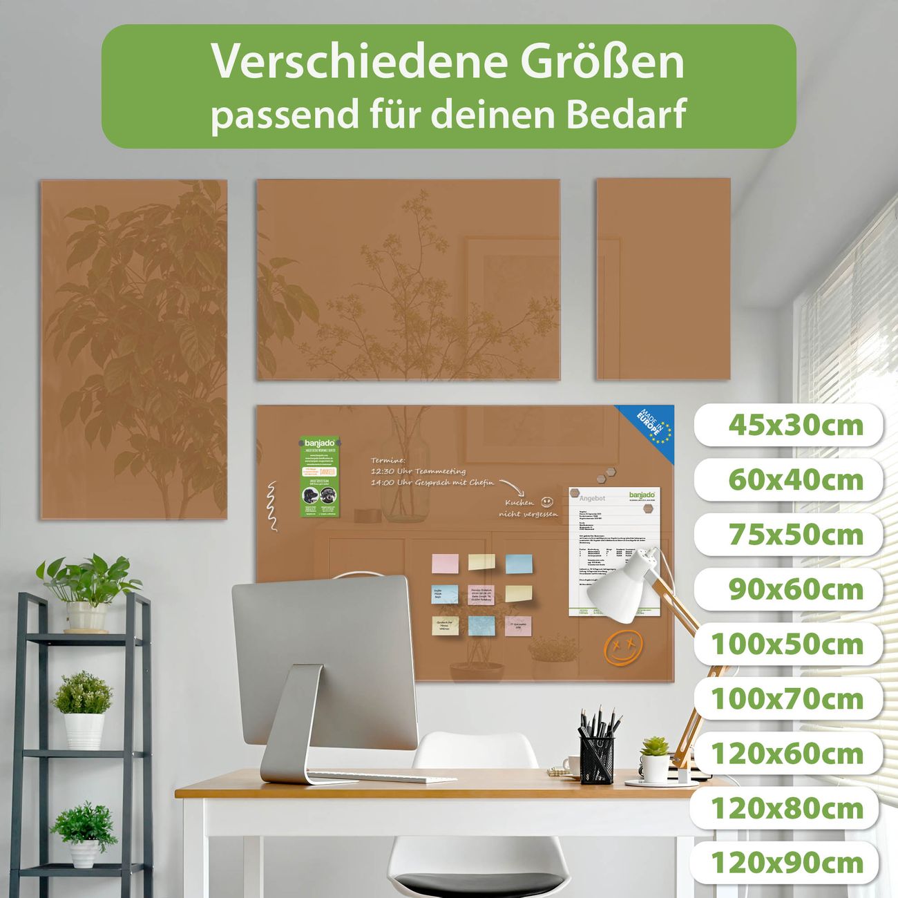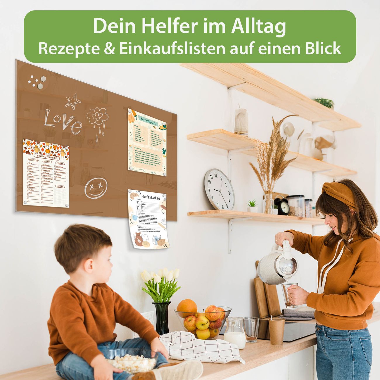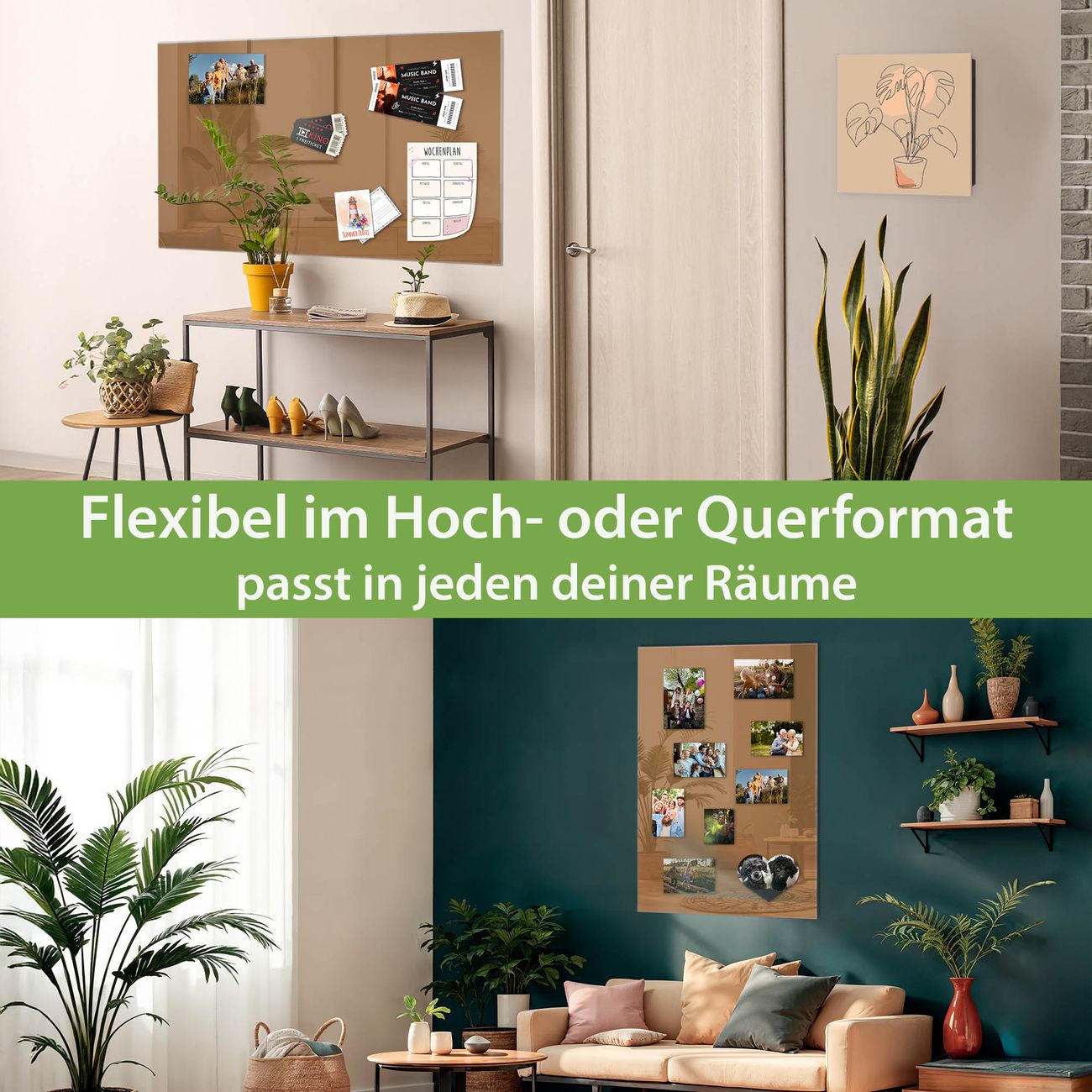 Die banjado Glas Magnettafel mit dem Motiv Farbe Kupfer Metallic verbindet Funktionalität mit Stil. Sie ersetzt das Zettelchaos durch klare Strukturen und bringt dabei eine warme, natürliche Atmosphäre in Ihr Zuhause. Ob im Büro, in der Küche oder im Eingangsbereich - dieses Design-Board zieht Blicke an und sorgt für Ordnung mit Charakter.