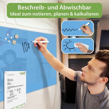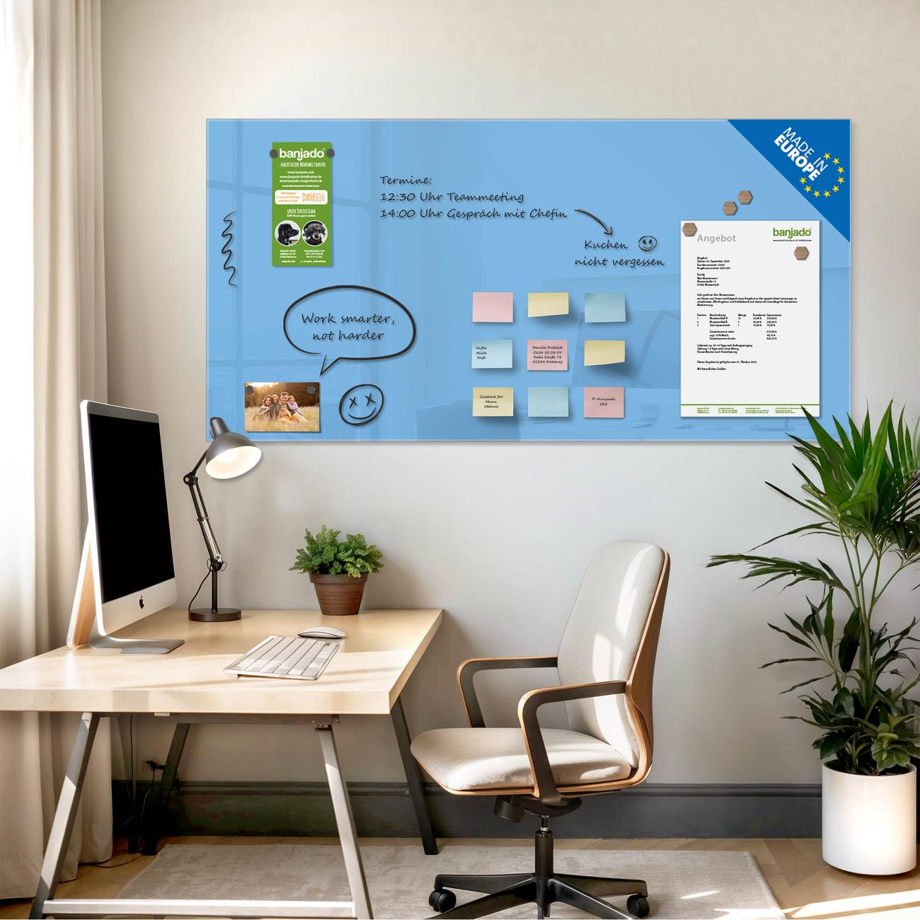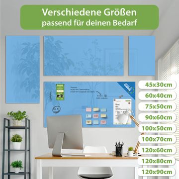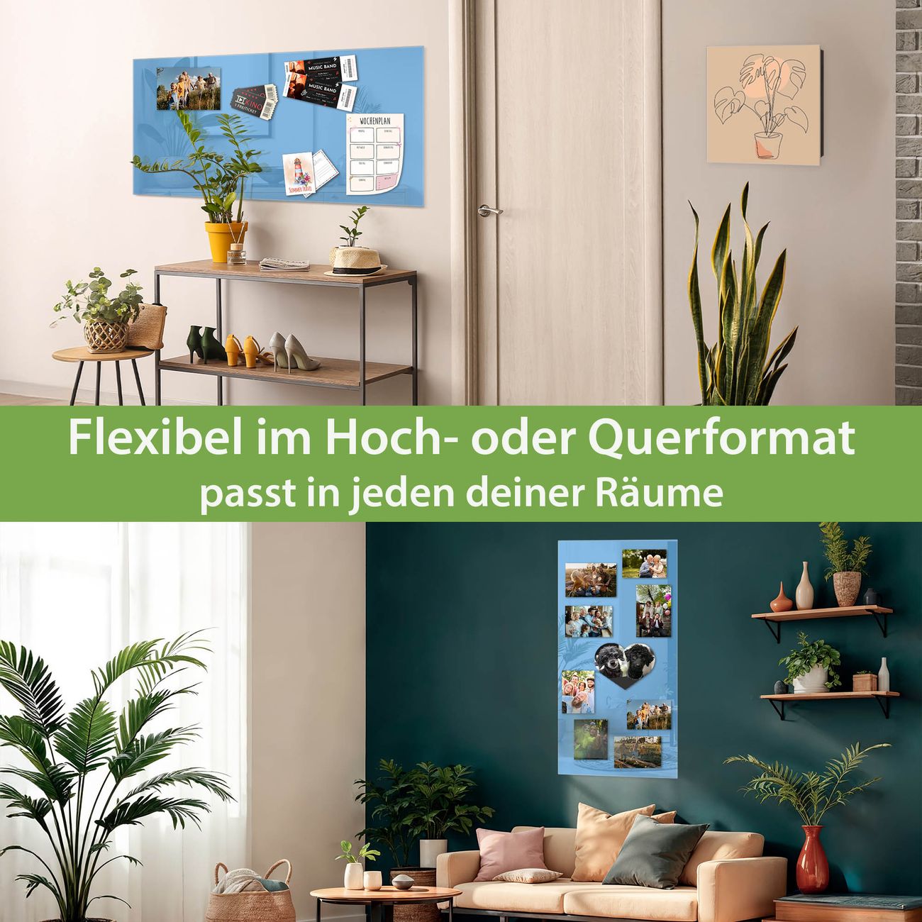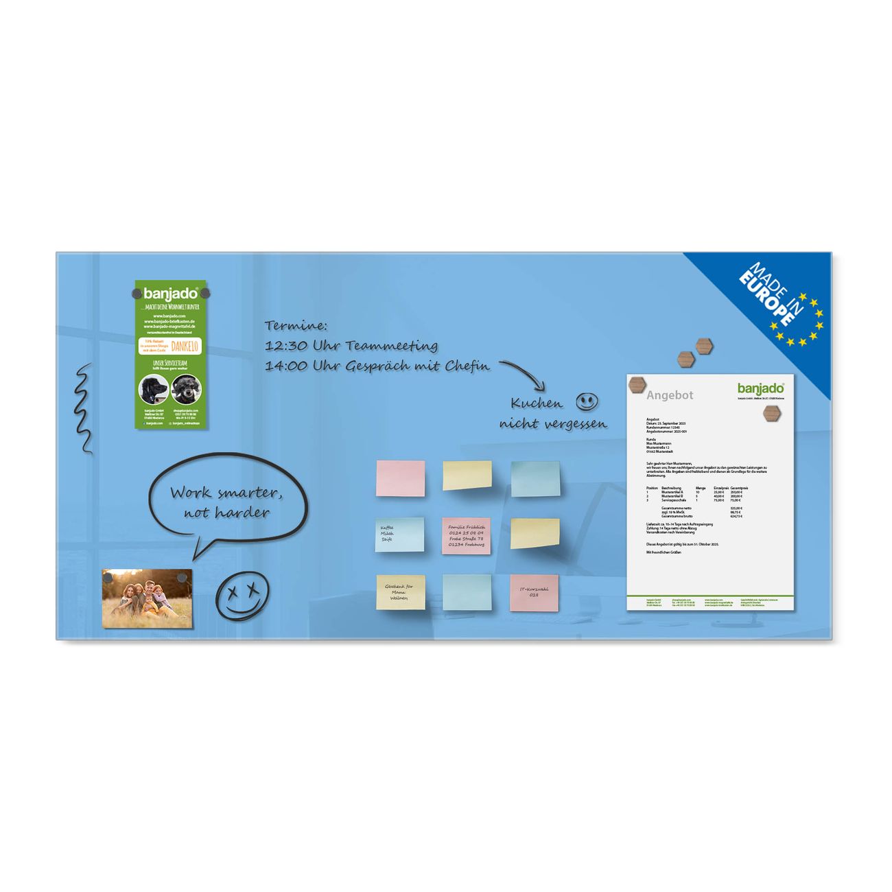 Glas Magnettafel im Querformat Farbe Pastellblau