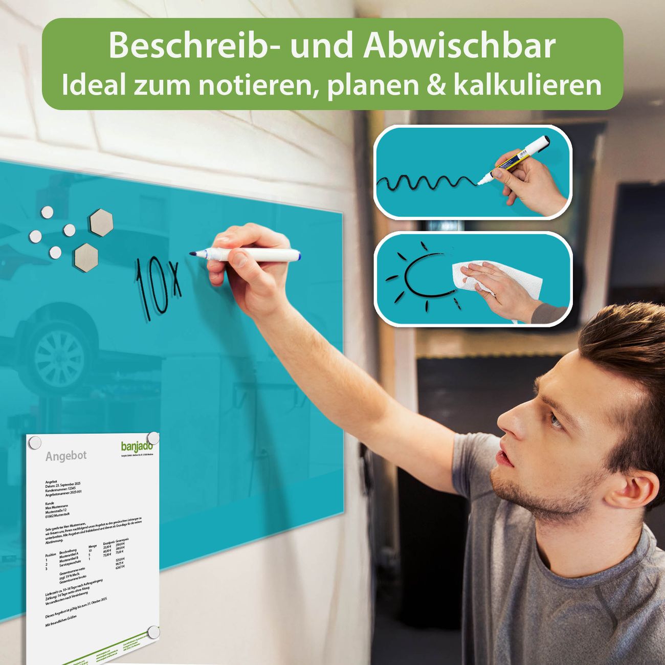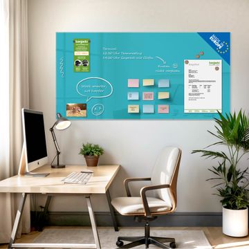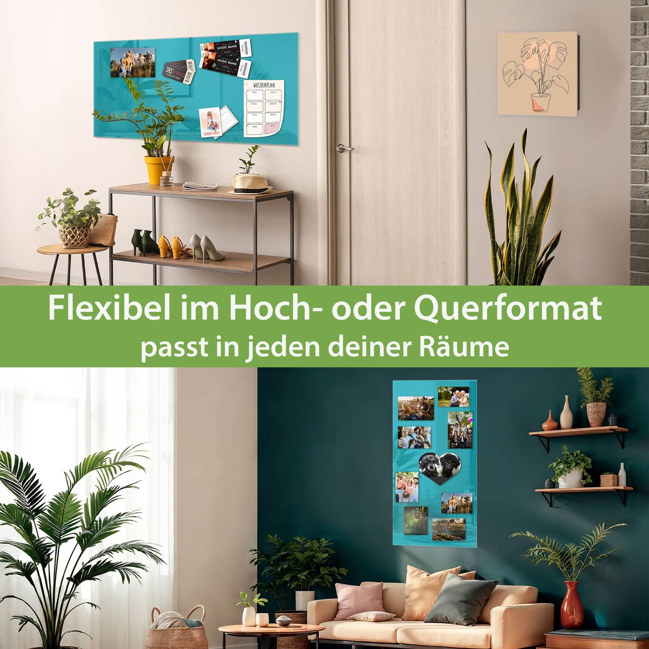 Die banjado Glas Magnettafel mit dem Motiv Farbe Türkis verbindet Funktionalität mit Stil. Sie ersetzt das Zettelchaos durch klare Strukturen und bringt dabei eine warme, natürliche Atmosphäre in Ihr Zuhause. Ob im Büro, in der Küche oder im Eingangsbereich - dieses Design-Board zieht Blicke an und sorgt für Ordnung mit Charakter.