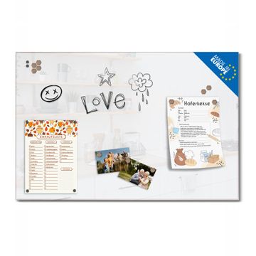 Auf der glatten Glasoberfläche lassen sich Termine, Rezepte oder Notizen ganz einfach mit Kreidestiften festhalten und rückstandslos entfernen. Starke Neodym-Magnete halten Ihre wichtigsten Erinnerungen sicher an Ort und Stelle. So entsteht Ihre ganz persönliche Ideenwand - jeden Tag neu.