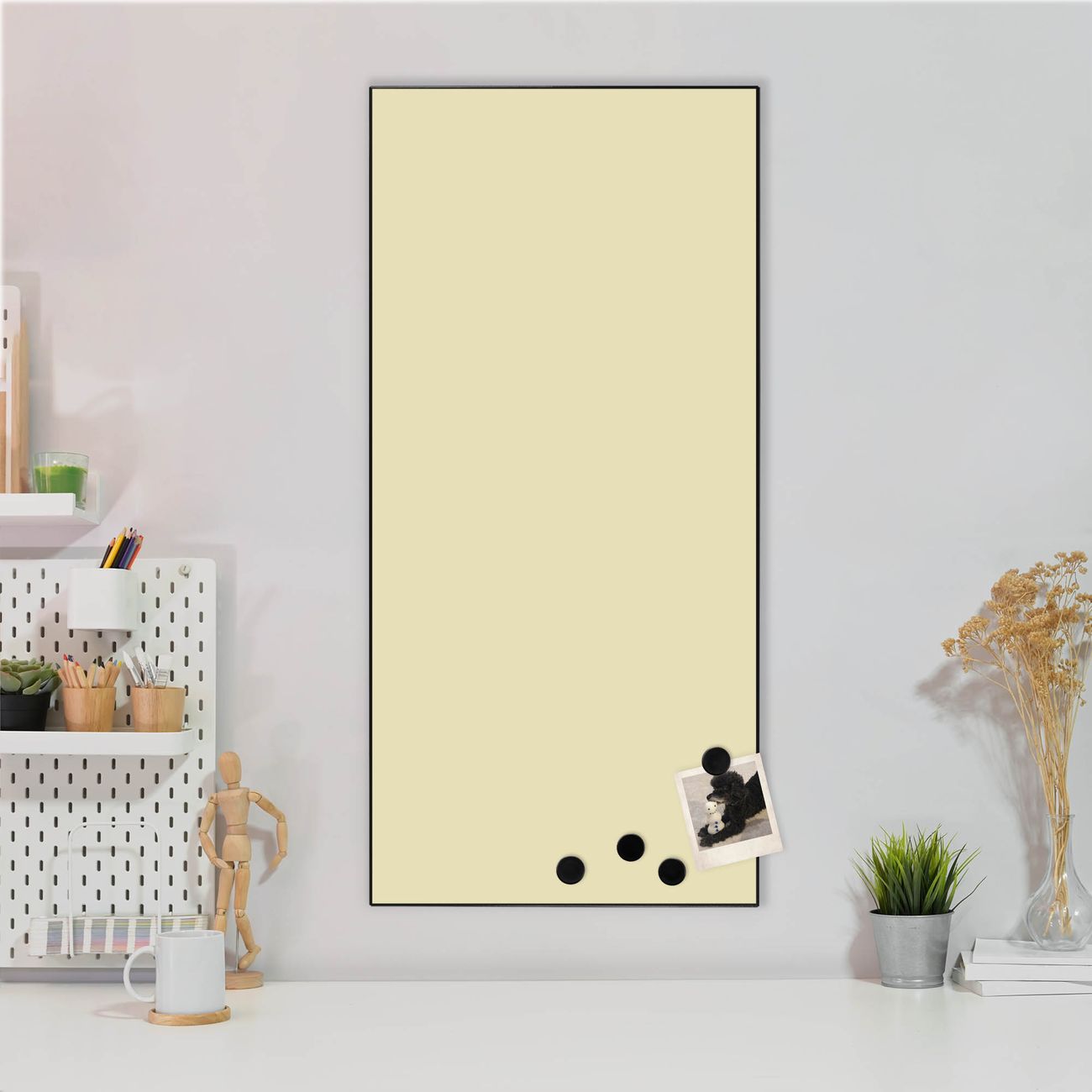 FUNKTION:  Die banjado Magnettafel mit Farbe Beige Motiv bringt Ordnung in Ihr Zettelchaos. Fotos, Termine, Notizen oder Rezepte lassen Sich hier stilvoll mit Magneten ordnen, Sie behalten alles im Blick. An der Design Magnettafel halten alle handesüblichen Magnete. DESIGN:  Die magnetische Pinnwand mit dem Motiv Farbe Beige ist ein eleganter Begleiter im Alltag. Mit dieser Memotafel aus Metall haben Sie auch ohne Notizen und Magnete ein schönes Dekoelement. Das Format bietet Ihnen ausreichend Platz um alle wichtigen Informationen im Blick zu behalten. DETAILS:  Die Magnettafel besteht aus silber-grau, weiß oder schwarzlackiertem Stahl. Sie hat eine Größe von 37 x 78 x 2cm. Es befinden sich auf der Rückseite vorgefertigte Aufhängungen die eine schnelle und unkomplizierte Anbringung ermöglichen. Das Motiv ist mit einem seidenmatten Laminat versehen und schützt so zusätzlich vor Kratzern. NUTZEN:  Sie können dieses Memoboard groß als Wandbild nutzen, es halten alle handelsüblichen Magneten daran. Die Pinnwand ist mit einem feuchten Lappen oder Schwamm abwischbar. Sie finden bei uns eine große Auswahl an passenden Magneten. BANJADO:  Wir sind ein kleines Team aus dem Herzen von Sachsen. Wir fertigen alle Artikel von Hand für Sie an, Sie erhalten keine preiswerte Importware. Auf Wunsch können Sie auch Ihr eigenes Foto auf die Magnettafel aufbringen, schreiben Sie uns an. Herzlichst, Ihr banjado-Team