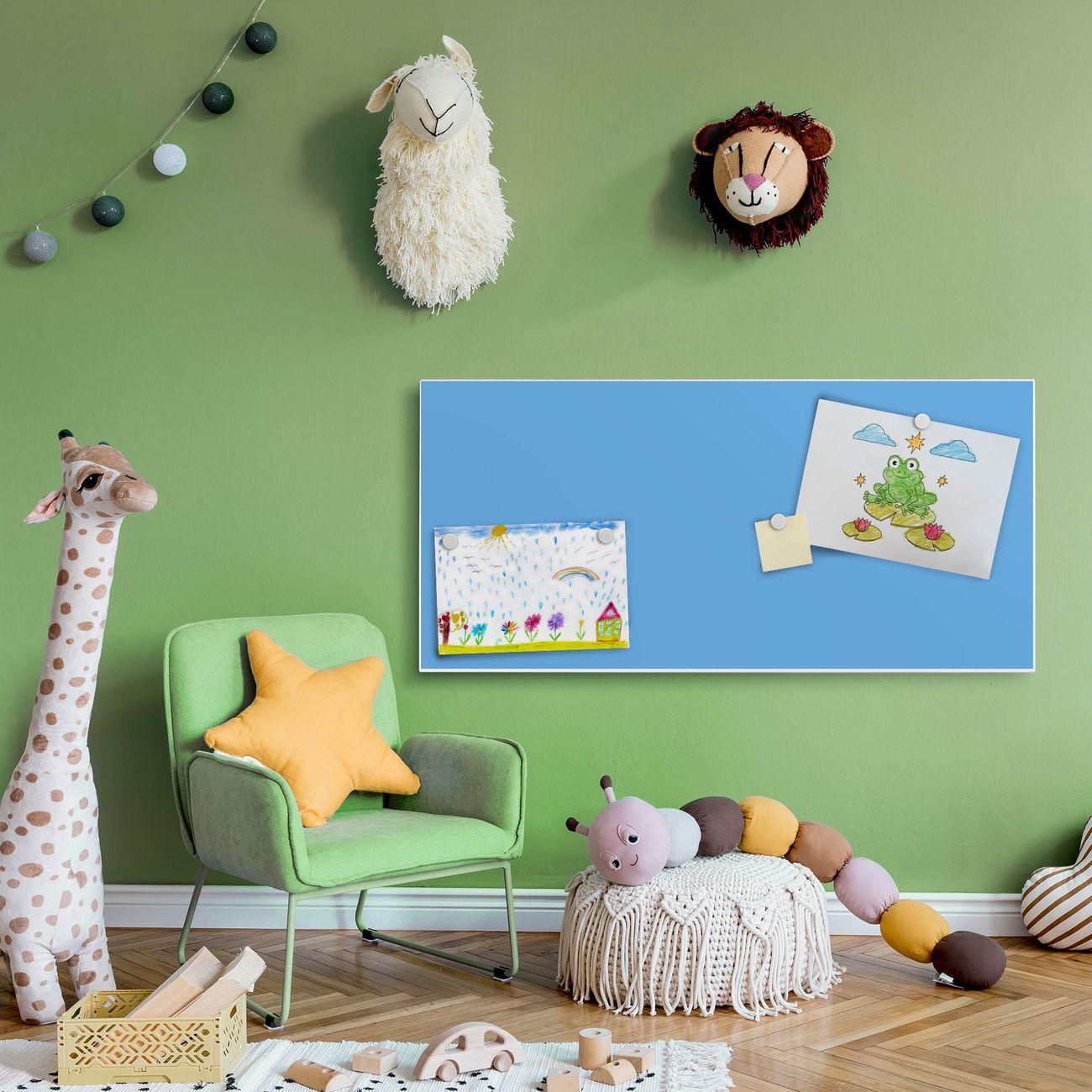 FUNKTION:  Die banjado Magnettafel mit Farbe Pastellblau Motiv bringt Ordnung in Ihr Zettelchaos. Fotos, Termine, Notizen oder Rezepte lassen Sich hier stilvoll mit Magneten ordnen, Sie behalten alles im Blick. An der Design Magnetwand halten alle handesüblichen Magnete. DESIGN:  Die Metall Pinnwand mit dem Motiv Farbe Pastellblau ist ein eleganter Begleiter im Alltag. Mit dieser Magnettafel haben Sie auch ohne Notizen und Magnete ein schönes Dekoelement. Das Format bietet Ihnen ausreichend Platz um alle wichtigen Informationen im Blick zu behalten. DETAILS: Die magnetische Pinnwand besteht aus silber-grau, weiß oder schwarz lackiertem Stahl. Sie hat eine Größe von 78cm x 37cm. Es befinden sich auf der Rückseite vorgefertigte Löcher die eine schnelle und unkomplizierte Anbringung ermöglichen. Das Motiv ist mit einem seidenmatten Laminat versehen und schützt so zusätzlich vor Kratzern. NUTZEN:  Sie können diese Magnettafel wunderbar als Wandbild nutzen, es halten alle handelsüblichen Magneten daran. Das Memoboard ist mit einem feuchten Lappen oder Schwamm abwischbar. Sie finden bei uns eine große Auswahl an passenden Magneten. BANJADO:  Wir sind ein kleines Team aus dem Herzen von Sachsen. Wir fertigen alle Artikel von Hand für Sie an, Sie erhalten keine preiswerte Importware. Auf Wunsch können Sie auch Ihr eigenes Foto auf die Magnettafel aufbringen, schreiben Sie uns an. Herzlichst, Ihr banjado-Team