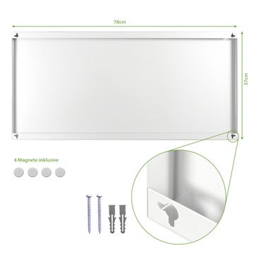 - Zubehör: 4 Magnete, Schrauben und Dübel