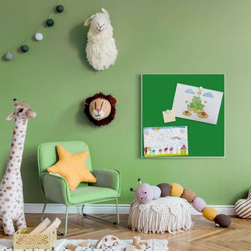 Die banjado Design Magnettafel mit Motiv Farbe Grün bringt Ordnung in Ihr Zettelchaos. Fotos, Termine, Notizen oder Rezepte lassen Sich hier stilvoll mit Magneten ordnen, Sie behalten alles im Blick. An der Pinnwand halten alle handelsüblichen Magnete. Mit dieser Pinnwand aus Metall haben Sie auch ohne Notizen und Magnete ein schönes Dekoelement. Das Quadratische Format bietet Ihnen ausreichend Platz um alle wichtigen Informationen im Blick zu behalten.