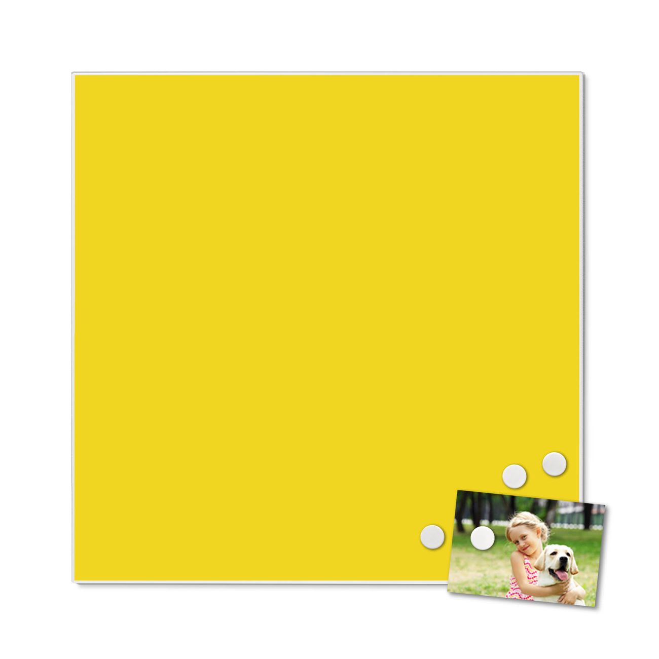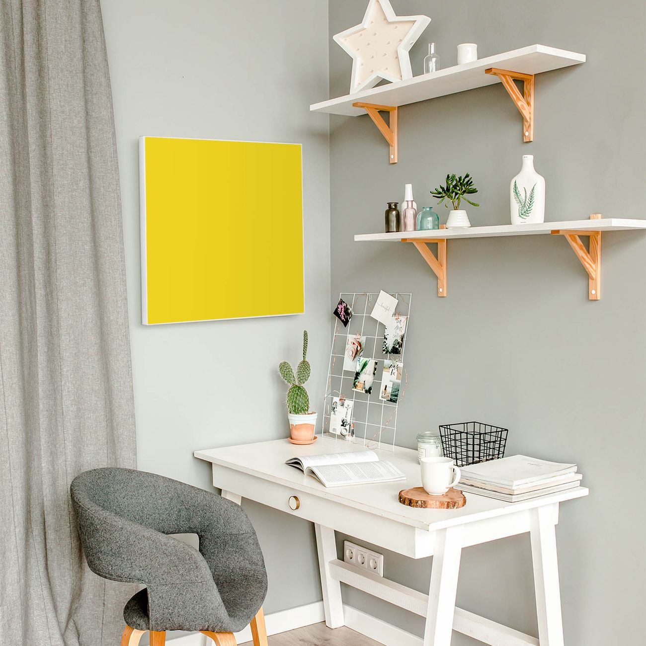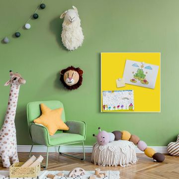 Die banjado Design Magnettafel mit Motiv Farbe Sonnengelb bringt Ordnung in Ihr Zettelchaos. Fotos, Termine, Notizen oder Rezepte lassen Sich hier stilvoll mit Magneten ordnen, Sie behalten alles im Blick. An der Pinnwand halten alle handelsüblichen Magnete. Mit dieser Pinnwand aus Metall haben Sie auch ohne Notizen und Magnete ein schönes Dekoelement. Das Quadratische Format bietet Ihnen ausreichend Platz um alle wichtigen Informationen im Blick zu behalten.