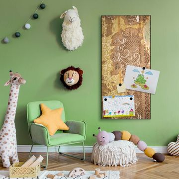 FUNKTION:  Die banjado Magnettafel mit Motiv Alte Tapeten Motiv bringt Ordnung in Ihr Zettelchaos. Fotos, Termine, Notizen oder Rezepte lassen Sich hier stilvoll mit Magneten ordnen, Sie behalten alles im Blick. An der Design Magnettafel halten alle handesüblichen Magnete. DESIGN:  Die magnetische Pinnwand mit dem Motiv Motiv Alte Tapeten ist ein eleganter Begleiter im Alltag. Mit dieser Memotafel aus Metall haben Sie auch ohne Notizen und Magnete ein schönes Dekoelement. Das Format bietet Ihnen ausreichend Platz um alle wichtigen Informationen im Blick zu behalten. DETAILS:  Die Magnettafel besteht aus silber-grau, weiß oder schwarzlackiertem Stahl. Sie hat eine Größe von 37 x 78 x 2cm. Es befinden sich auf der Rückseite vorgefertigte Aufhängungen die eine schnelle und unkomplizierte Anbringung ermöglichen. Das Motiv ist mit einem seidenmatten Laminat versehen und schützt so zusätzlich vor Kratzern. NUTZEN:  Sie können dieses Memoboard groß als Wandbild nutzen, es halten alle handelsüblichen Magneten daran. Die Pinnwand ist mit einem feuchten Lappen oder Schwamm abwischbar. Sie finden bei uns eine große Auswahl an passenden Magneten. BANJADO:  Wir sind ein kleines Team aus dem Herzen von Sachsen. Wir fertigen alle Artikel von Hand für Sie an, Sie erhalten keine preiswerte Importware. Auf Wunsch können Sie auch Ihr eigenes Foto auf die Magnettafel aufbringen, schreiben Sie uns an. Herzlichst, Ihr banjado-Team