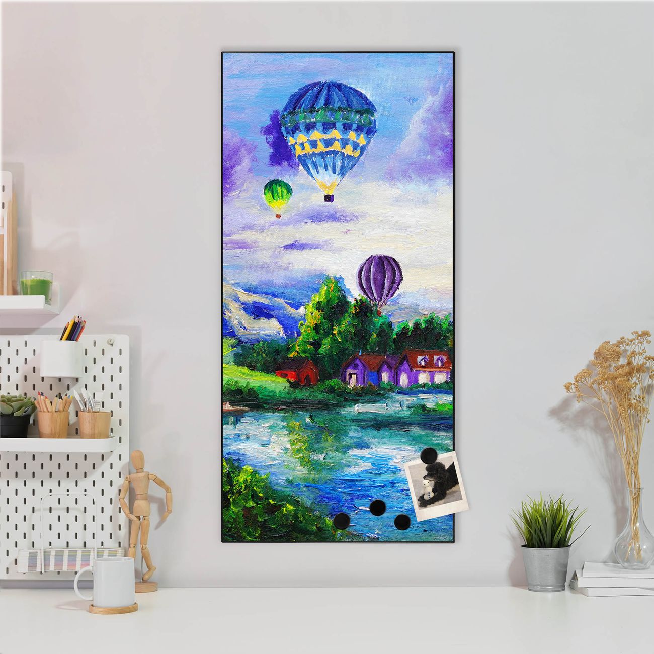 Stahl Magnettafel Hochformat 78x37cm Ballons In Lila Wolken