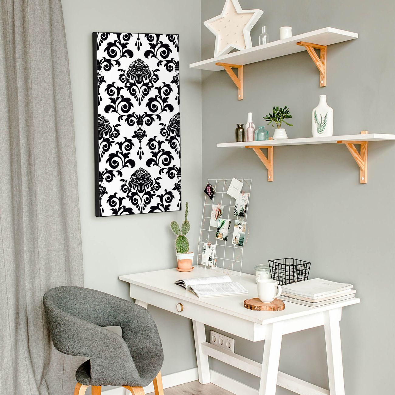FUNKTION:  Die banjado Magnettafel mit Motiv Barock Motiv bringt Ordnung in Ihr Zettelchaos. Fotos, Termine, Notizen oder Rezepte lassen Sich hier stilvoll mit Magneten ordnen, Sie behalten alles im Blick. An der Design Magnettafel halten alle handesüblichen Magnete. DESIGN:  Die magnetische Pinnwand mit dem Motiv Motiv Barock ist ein eleganter Begleiter im Alltag. Mit dieser Memotafel aus Metall haben Sie auch ohne Notizen und Magnete ein schönes Dekoelement. Das Format bietet Ihnen ausreichend Platz um alle wichtigen Informationen im Blick zu behalten. DETAILS:  Die Magnettafel besteht aus silber-grau, weiß oder schwarzlackiertem Stahl. Sie hat eine Größe von 37 x 78 x 2cm. Es befinden sich auf der Rückseite vorgefertigte Aufhängungen die eine schnelle und unkomplizierte Anbringung ermöglichen. Das Motiv ist mit einem seidenmatten Laminat versehen und schützt so zusätzlich vor Kratzern. NUTZEN:  Sie können dieses Memoboard groß als Wandbild nutzen, es halten alle handelsüblichen Magneten daran. Die Pinnwand ist mit einem feuchten Lappen oder Schwamm abwischbar. Sie finden bei uns eine große Auswahl an passenden Magneten. BANJADO:  Wir sind ein kleines Team aus dem Herzen von Sachsen. Wir fertigen alle Artikel von Hand für Sie an, Sie erhalten keine preiswerte Importware. Auf Wunsch können Sie auch Ihr eigenes Foto auf die Magnettafel aufbringen, schreiben Sie uns an. Herzlichst, Ihr banjado-Team