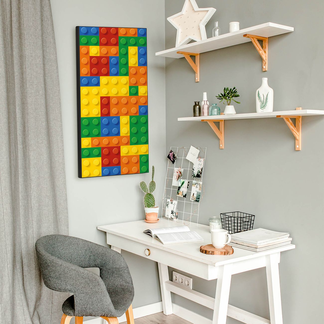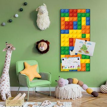 FUNKTION:  Die banjado Magnettafel mit Motiv Bausteine Motiv bringt Ordnung in Ihr Zettelchaos. Fotos, Termine, Notizen oder Rezepte lassen Sich hier stilvoll mit Magneten ordnen, Sie behalten alles im Blick. An der Design Magnettafel halten alle handesüblichen Magnete. DESIGN:  Die magnetische Pinnwand mit dem Motiv Motiv Bausteine ist ein eleganter Begleiter im Alltag. Mit dieser Memotafel aus Metall haben Sie auch ohne Notizen und Magnete ein schönes Dekoelement. Das Format bietet Ihnen ausreichend Platz um alle wichtigen Informationen im Blick zu behalten. DETAILS:  Die Magnettafel besteht aus silber-grau, weiß oder schwarzlackiertem Stahl. Sie hat eine Größe von 37 x 78 x 2cm. Es befinden sich auf der Rückseite vorgefertigte Aufhängungen die eine schnelle und unkomplizierte Anbringung ermöglichen. Das Motiv ist mit einem seidenmatten Laminat versehen und schützt so zusätzlich vor Kratzern. NUTZEN:  Sie können dieses Memoboard groß als Wandbild nutzen, es halten alle handelsüblichen Magneten daran. Die Pinnwand ist mit einem feuchten Lappen oder Schwamm abwischbar. Sie finden bei uns eine große Auswahl an passenden Magneten. BANJADO:  Wir sind ein kleines Team aus dem Herzen von Sachsen. Wir fertigen alle Artikel von Hand für Sie an, Sie erhalten keine preiswerte Importware. Auf Wunsch können Sie auch Ihr eigenes Foto auf die Magnettafel aufbringen, schreiben Sie uns an. Herzlichst, Ihr banjado-Team
