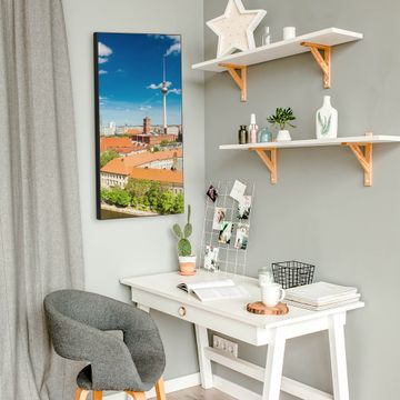 FUNKTION:  Die banjado Magnettafel mit Motiv Berlin Mitte Motiv bringt Ordnung in Ihr Zettelchaos. Fotos, Termine, Notizen oder Rezepte lassen Sich hier stilvoll mit Magneten ordnen, Sie behalten alles im Blick. An der Design Magnettafel halten alle handesüblichen Magnete. DESIGN:  Die magnetische Pinnwand mit dem Motiv Motiv Berlin Mitte ist ein eleganter Begleiter im Alltag. Mit dieser Memotafel aus Metall haben Sie auch ohne Notizen und Magnete ein schönes Dekoelement. Das Format bietet Ihnen ausreichend Platz um alle wichtigen Informationen im Blick zu behalten. DETAILS:  Die Magnettafel besteht aus silber-grau, weiß oder schwarzlackiertem Stahl. Sie hat eine Größe von 37 x 78 x 2cm. Es befinden sich auf der Rückseite vorgefertigte Aufhängungen die eine schnelle und unkomplizierte Anbringung ermöglichen. Das Motiv ist mit einem seidenmatten Laminat versehen und schützt so zusätzlich vor Kratzern. NUTZEN:  Sie können dieses Memoboard groß als Wandbild nutzen, es halten alle handelsüblichen Magneten daran. Die Pinnwand ist mit einem feuchten Lappen oder Schwamm abwischbar. Sie finden bei uns eine große Auswahl an passenden Magneten. BANJADO:  Wir sind ein kleines Team aus dem Herzen von Sachsen. Wir fertigen alle Artikel von Hand für Sie an, Sie erhalten keine preiswerte Importware. Auf Wunsch können Sie auch Ihr eigenes Foto auf die Magnettafel aufbringen, schreiben Sie uns an. Herzlichst, Ihr banjado-Team