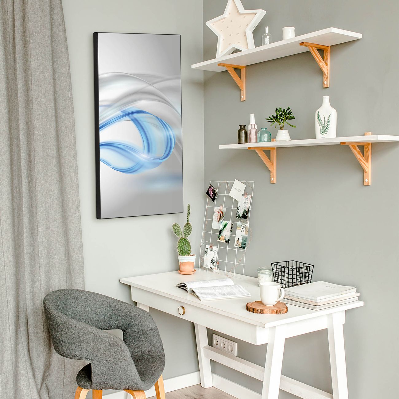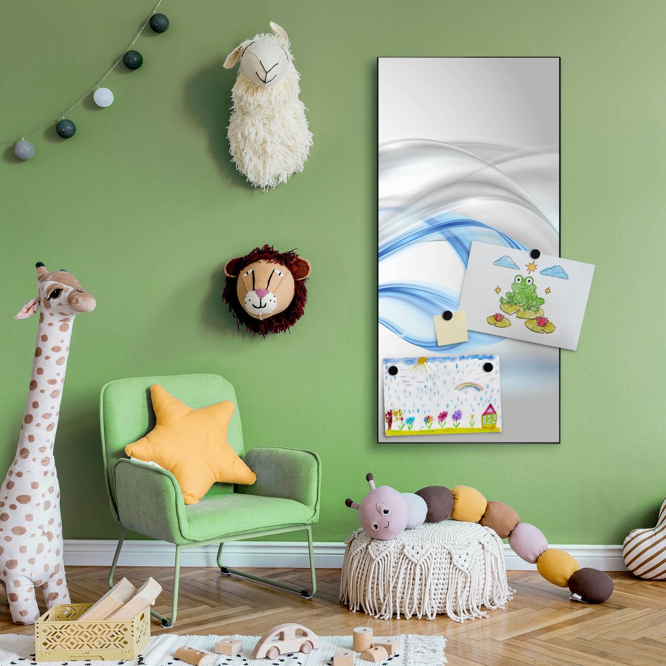 FUNKTION:  Die banjado Magnettafel mit Motiv Blauer Schleier Motiv bringt Ordnung in Ihr Zettelchaos. Fotos, Termine, Notizen oder Rezepte lassen Sich hier stilvoll mit Magneten ordnen, Sie behalten alles im Blick. An der Design Magnettafel halten alle handesüblichen Magnete. DESIGN:  Die magnetische Pinnwand mit dem Motiv Motiv Blauer Schleier ist ein eleganter Begleiter im Alltag. Mit dieser Memotafel aus Metall haben Sie auch ohne Notizen und Magnete ein schönes Dekoelement. Das Format bietet Ihnen ausreichend Platz um alle wichtigen Informationen im Blick zu behalten. DETAILS:  Die Magnettafel besteht aus silber-grau, weiß oder schwarzlackiertem Stahl. Sie hat eine Größe von 37 x 78 x 2cm. Es befinden sich auf der Rückseite vorgefertigte Aufhängungen die eine schnelle und unkomplizierte Anbringung ermöglichen. Das Motiv ist mit einem seidenmatten Laminat versehen und schützt so zusätzlich vor Kratzern. NUTZEN:  Sie können dieses Memoboard groß als Wandbild nutzen, es halten alle handelsüblichen Magneten daran. Die Pinnwand ist mit einem feuchten Lappen oder Schwamm abwischbar. Sie finden bei uns eine große Auswahl an passenden Magneten. BANJADO:  Wir sind ein kleines Team aus dem Herzen von Sachsen. Wir fertigen alle Artikel von Hand für Sie an, Sie erhalten keine preiswerte Importware. Auf Wunsch können Sie auch Ihr eigenes Foto auf die Magnettafel aufbringen, schreiben Sie uns an. Herzlichst, Ihr banjado-Team