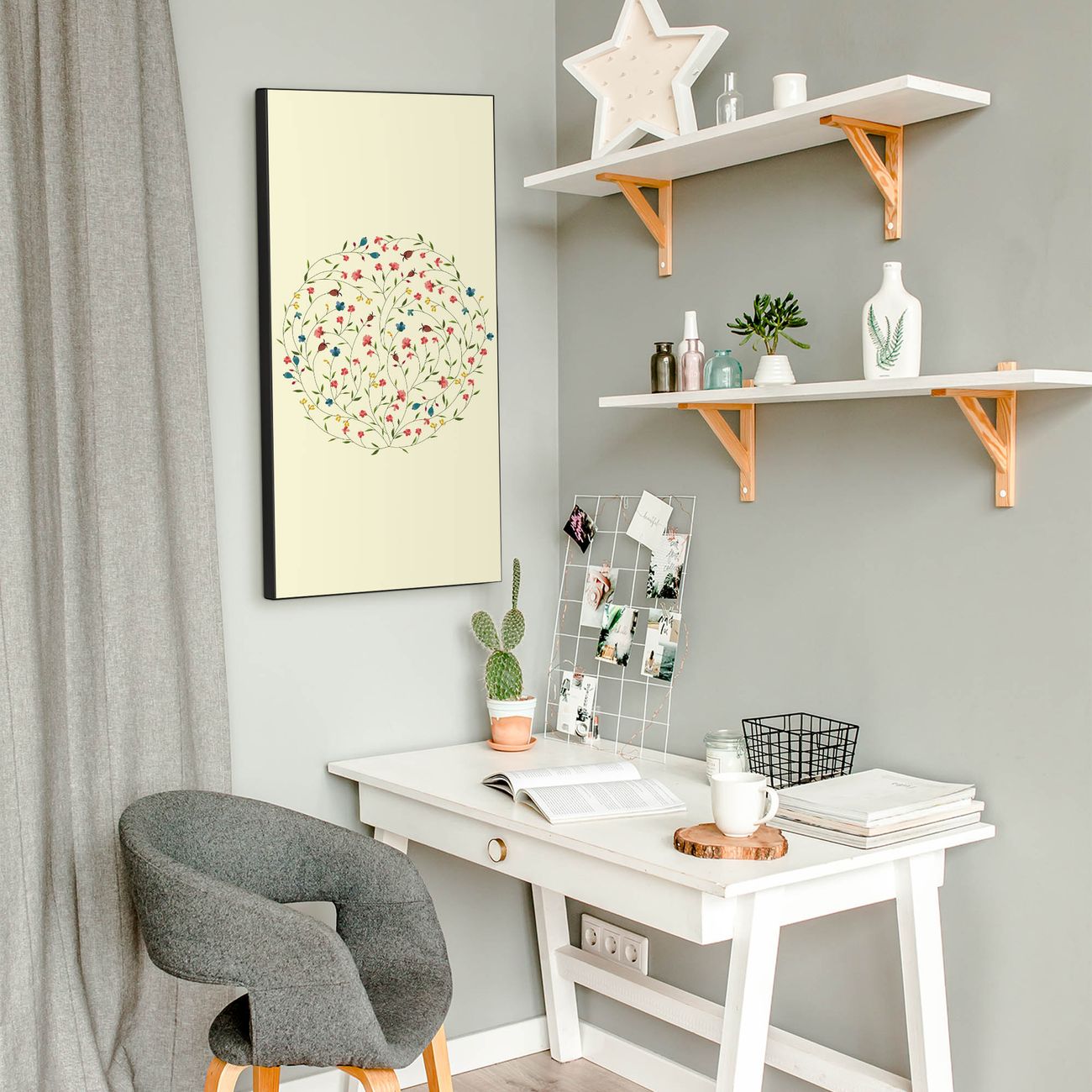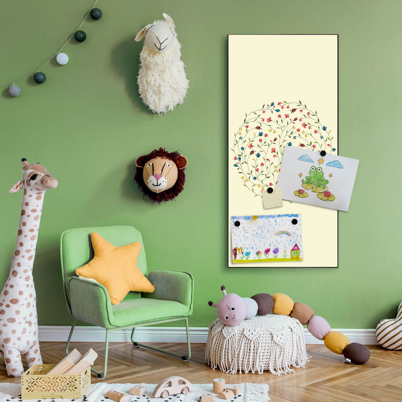 FUNKTION:  Die banjado Magnettafel mit Motiv Blumenreigen Motiv bringt Ordnung in Ihr Zettelchaos. Fotos, Termine, Notizen oder Rezepte lassen Sich hier stilvoll mit Magneten ordnen, Sie behalten alles im Blick. An der Design Magnettafel halten alle handesüblichen Magnete. DESIGN:  Die magnetische Pinnwand mit dem Motiv Motiv Blumenreigen ist ein eleganter Begleiter im Alltag. Mit dieser Memotafel aus Metall haben Sie auch ohne Notizen und Magnete ein schönes Dekoelement. Das Format bietet Ihnen ausreichend Platz um alle wichtigen Informationen im Blick zu behalten. DETAILS:  Die Magnettafel besteht aus silber-grau, weiß oder schwarzlackiertem Stahl. Sie hat eine Größe von 37 x 78 x 2cm. Es befinden sich auf der Rückseite vorgefertigte Aufhängungen die eine schnelle und unkomplizierte Anbringung ermöglichen. Das Motiv ist mit einem seidenmatten Laminat versehen und schützt so zusätzlich vor Kratzern. NUTZEN:  Sie können dieses Memoboard groß als Wandbild nutzen, es halten alle handelsüblichen Magneten daran. Die Pinnwand ist mit einem feuchten Lappen oder Schwamm abwischbar. Sie finden bei uns eine große Auswahl an passenden Magneten. BANJADO:  Wir sind ein kleines Team aus dem Herzen von Sachsen. Wir fertigen alle Artikel von Hand für Sie an, Sie erhalten keine preiswerte Importware. Auf Wunsch können Sie auch Ihr eigenes Foto auf die Magnettafel aufbringen, schreiben Sie uns an. Herzlichst, Ihr banjado-Team